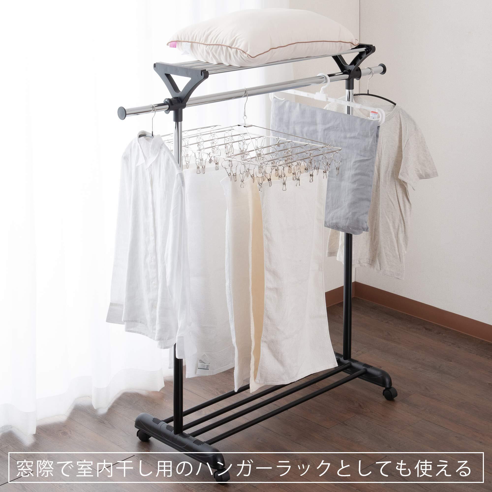 高さは6段階調節が可能。両サイドのハンガーポールが伸縮する。