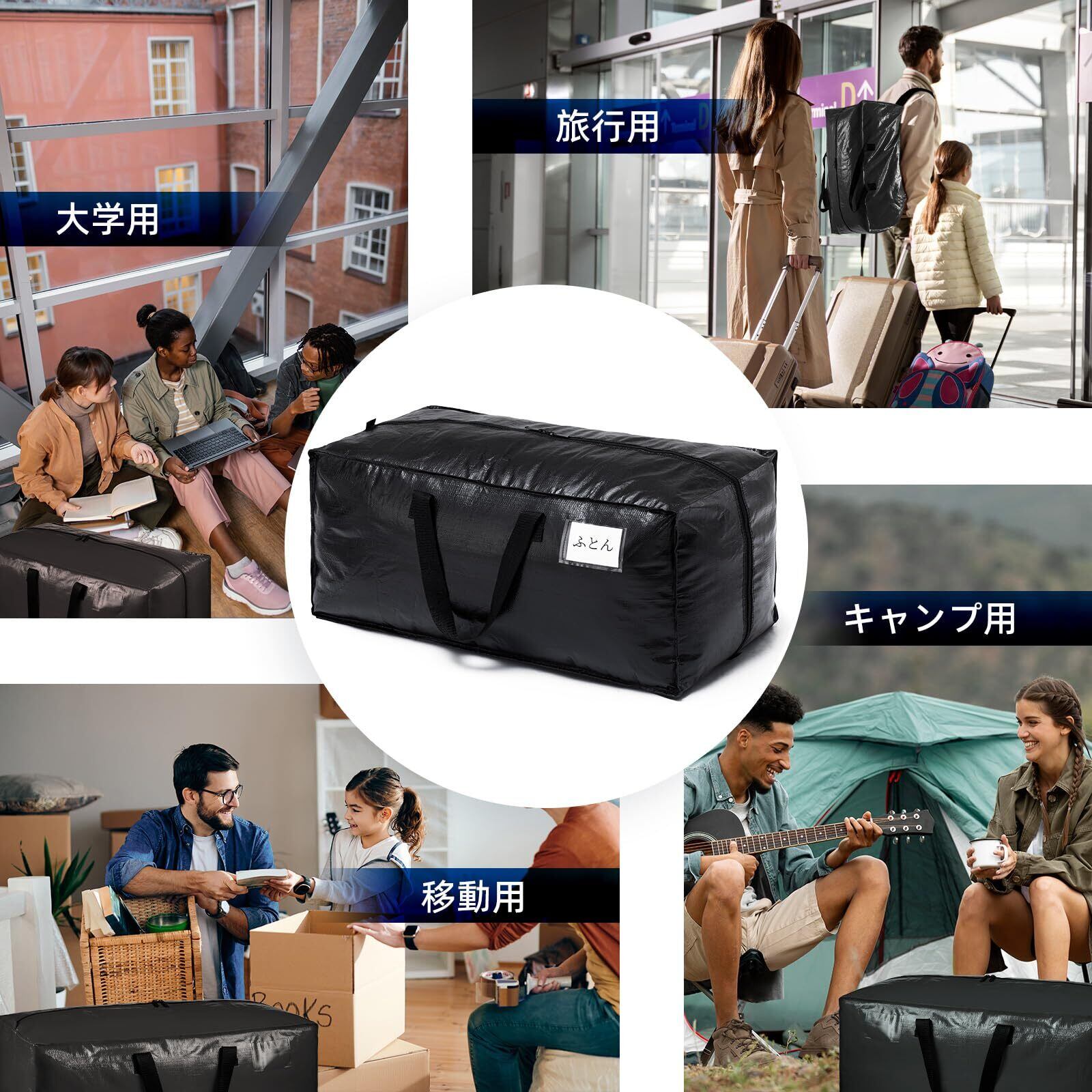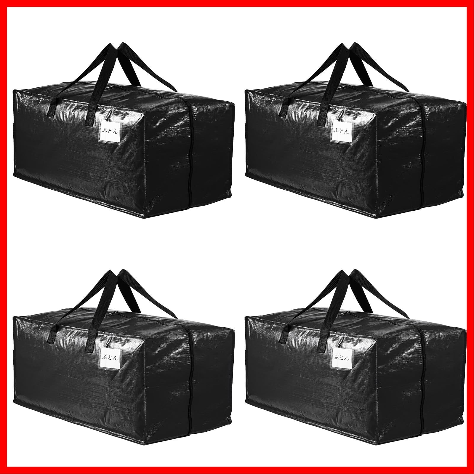 TAILI 大型収納袋 引越しバッグ 布団収納カバン 特大容量 ビッグバッグ 寝具ケース 持ち手付き 洋服 衣装ケース 羽毛ふとん 防塵防水 折りたたみ式 省スペース 引っ越し 背負える キャンプ 旅行 耐荷重 ブラック 4個セット | hananoki