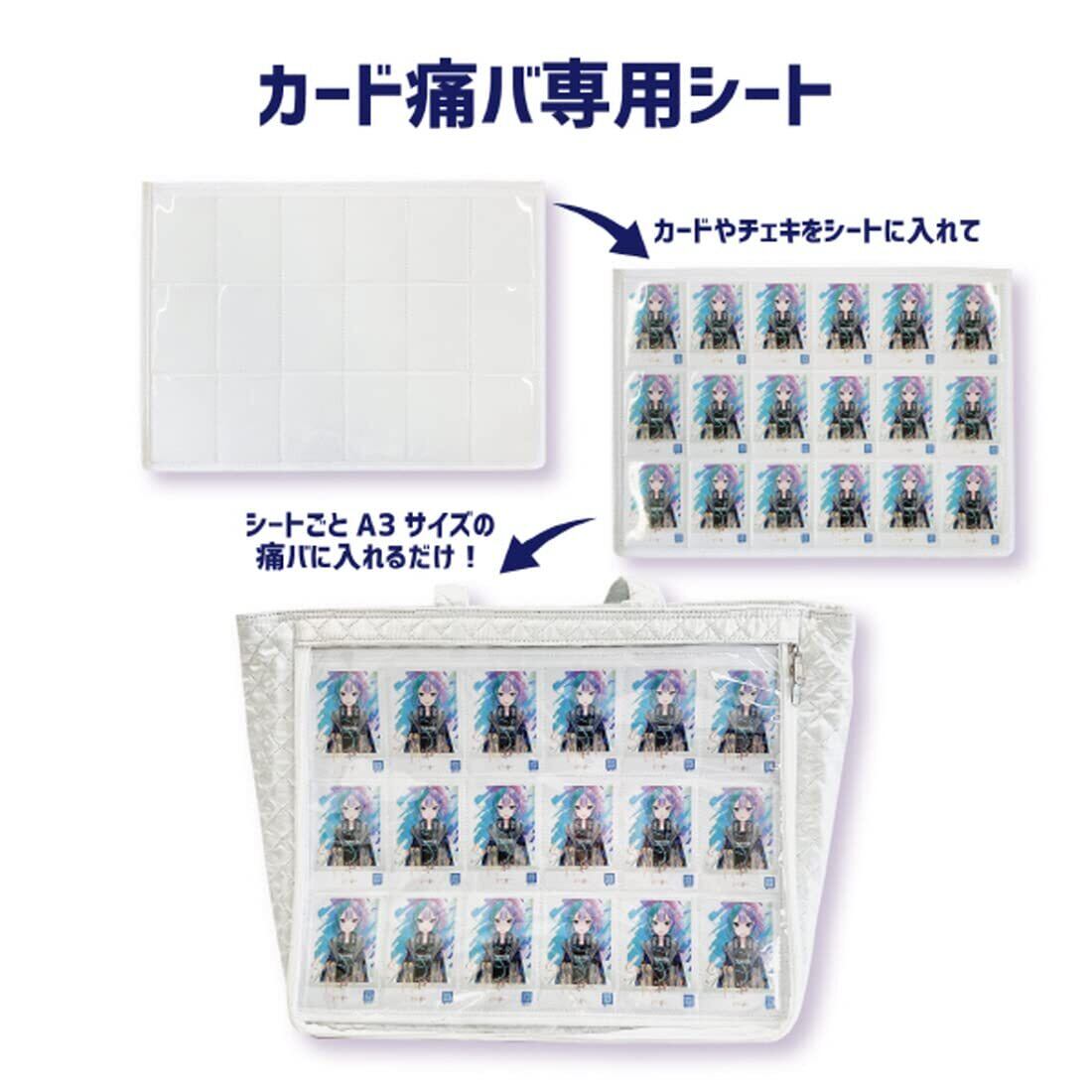 カードやチェキで簡単に痛バッグを作成できる専用シートが登場!お気に入りのカードを入れるだけで完成! 簡単に取り出せるのも嬉しいポイント◎A3サイズの痛バッグに対応しています。※シートが入らない痛バッグもございますのであらかじめサイズをご確認ください。※入れたいカードのサイズあらかじめサイズをご確認ください。※写真のカード、痛バッグは付属しません。
