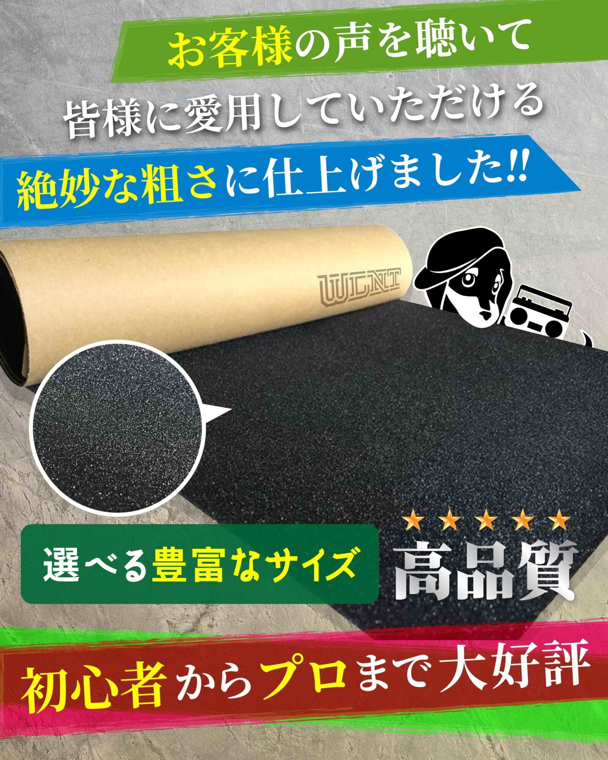 [サイズ]: スケートボード、ペニー、クルーザー、キックボードには9x33インチ(22.5cmx83.5cm)。ロンスケ、サーフスケート、横幅と縦の長さのある物は11x50インチ(27.9cmx127cm)。