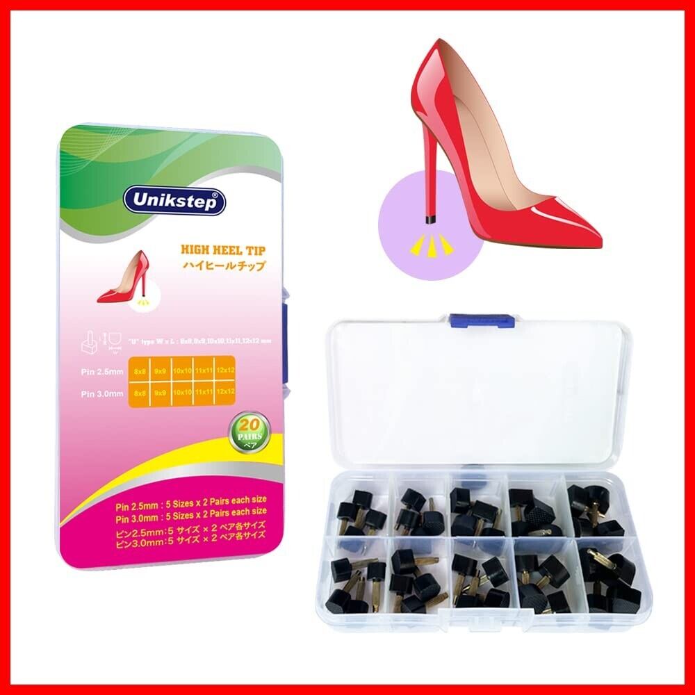 [UNIKSTEP] 20ペアのハイヒールのヒント、靴のかかとの交換、女性の靴の修理用タップキャップ、O字型またはU字型の女性用靴の滑り止めの先端ピン