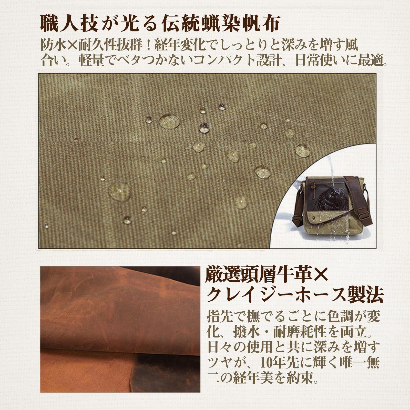 【特別な素材】ショルダーバッグのアウター生地全体に特殊な工芸の蝋染めキャンバスを使用し、フロントカバーに牛革を使用し、このショルダーバッグをよりレトロでスタイリッシュに見せる。大人っぽいスタイリッシュなデザインは、年齢を問わずさまざまな場面に適しています。