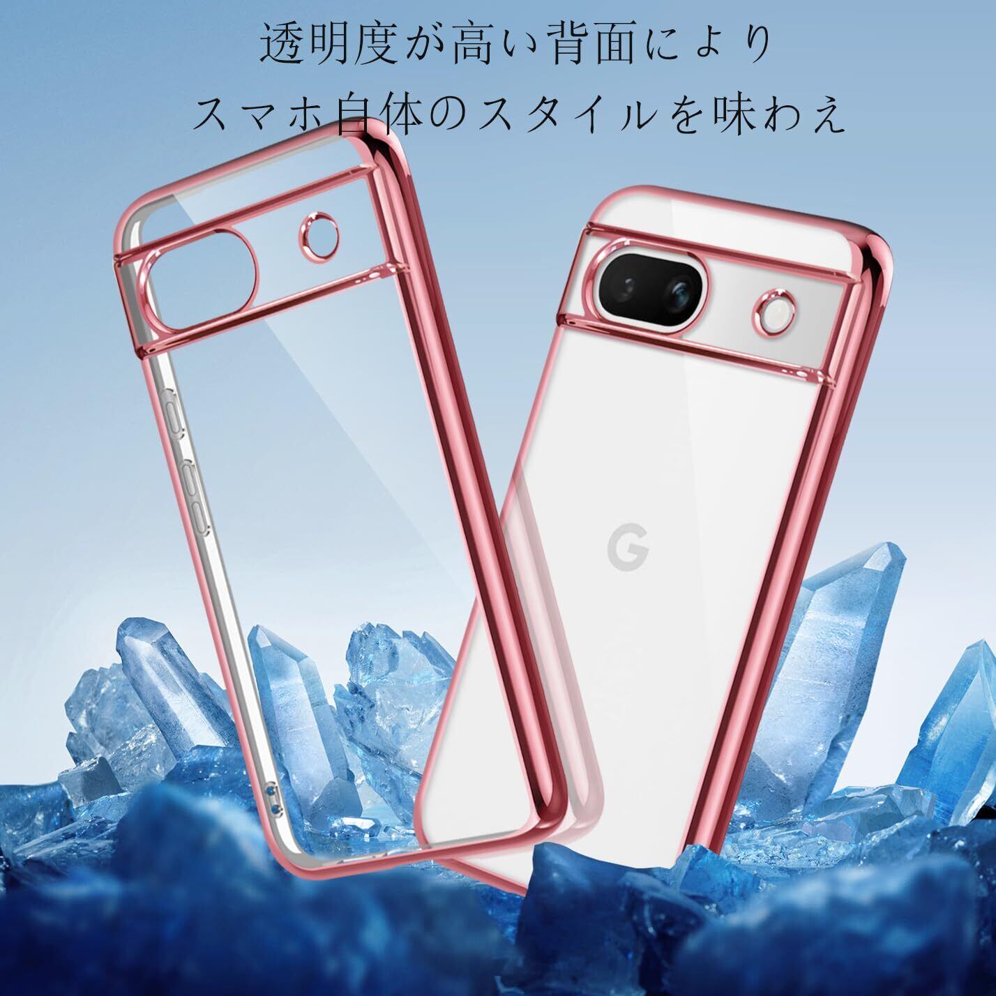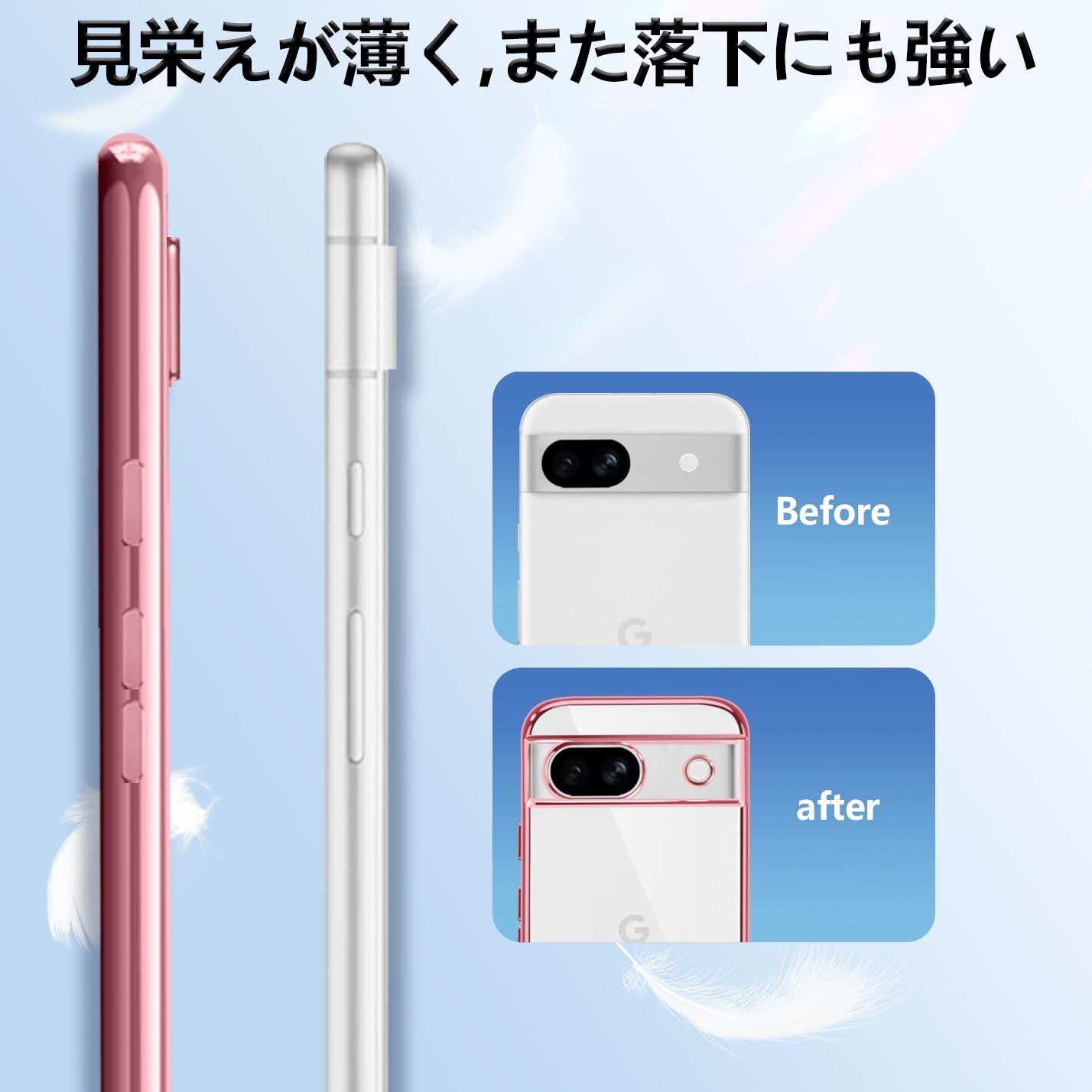 Google Pixel8a ケース クリア TPU 透明 薄型 軽量 グーグル ピクセル 8a スマホケース 耐衝撃 メッキ加工 ソフト 人気 ワイヤレス充電対応 (ローズゴールド)