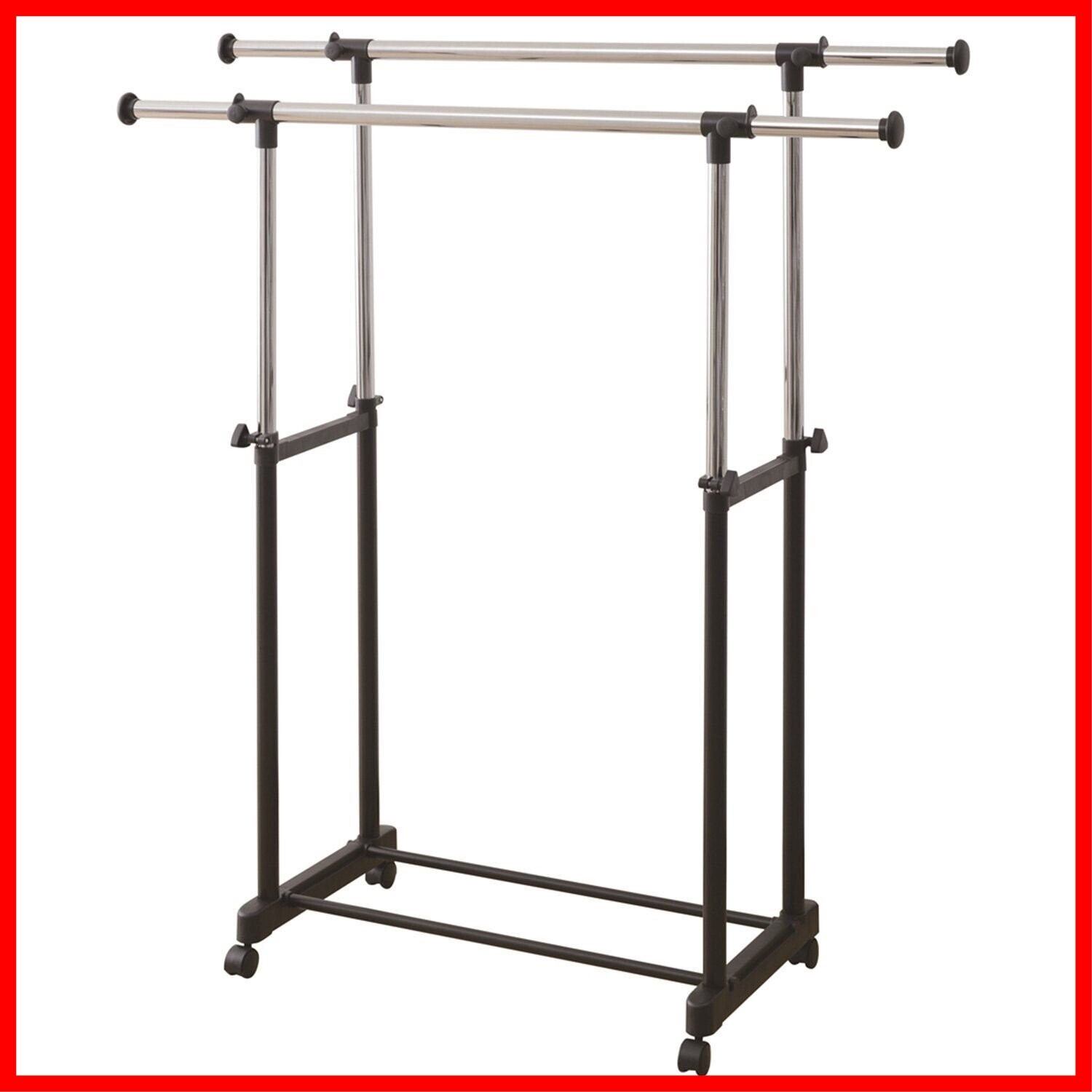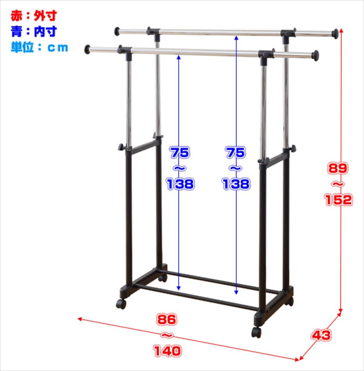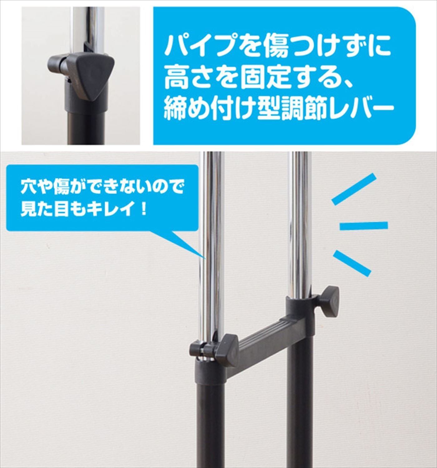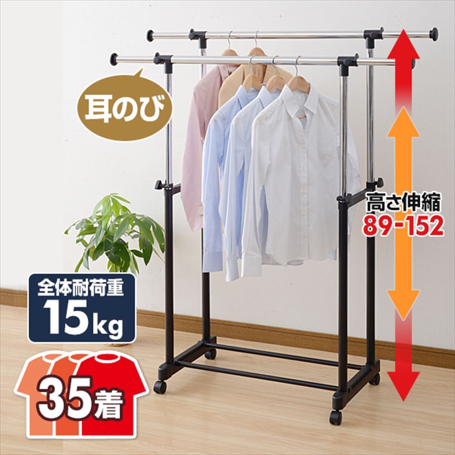 高さ調整ができるパイプハンガーラック、たっぷり収納のダブルタイプ