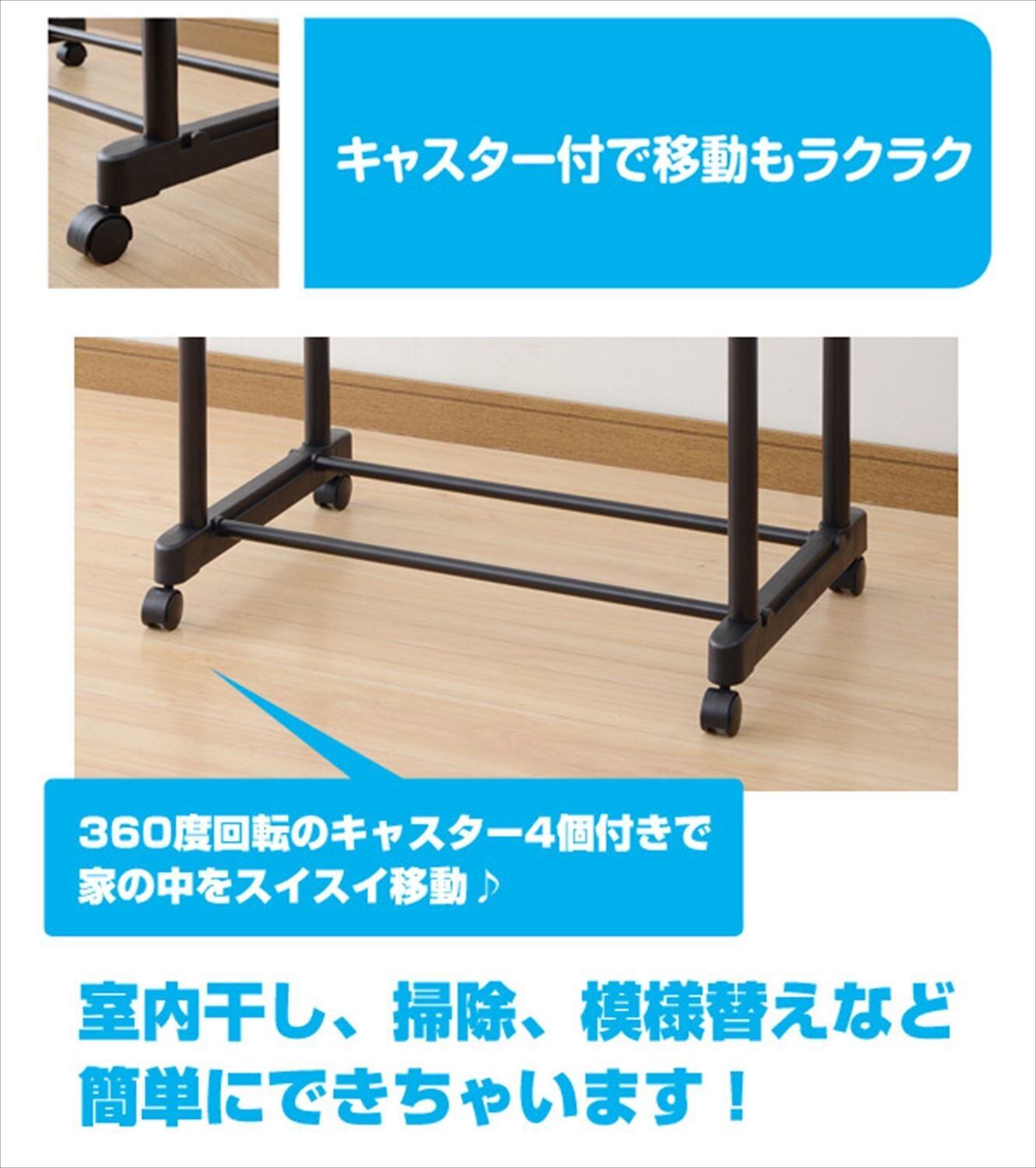 山善(YAMAZEN) 高さ伸縮パイプハンガーラック サイドバー付 ダブル キャスター付き ブラック MKS-WS(BK)(S)