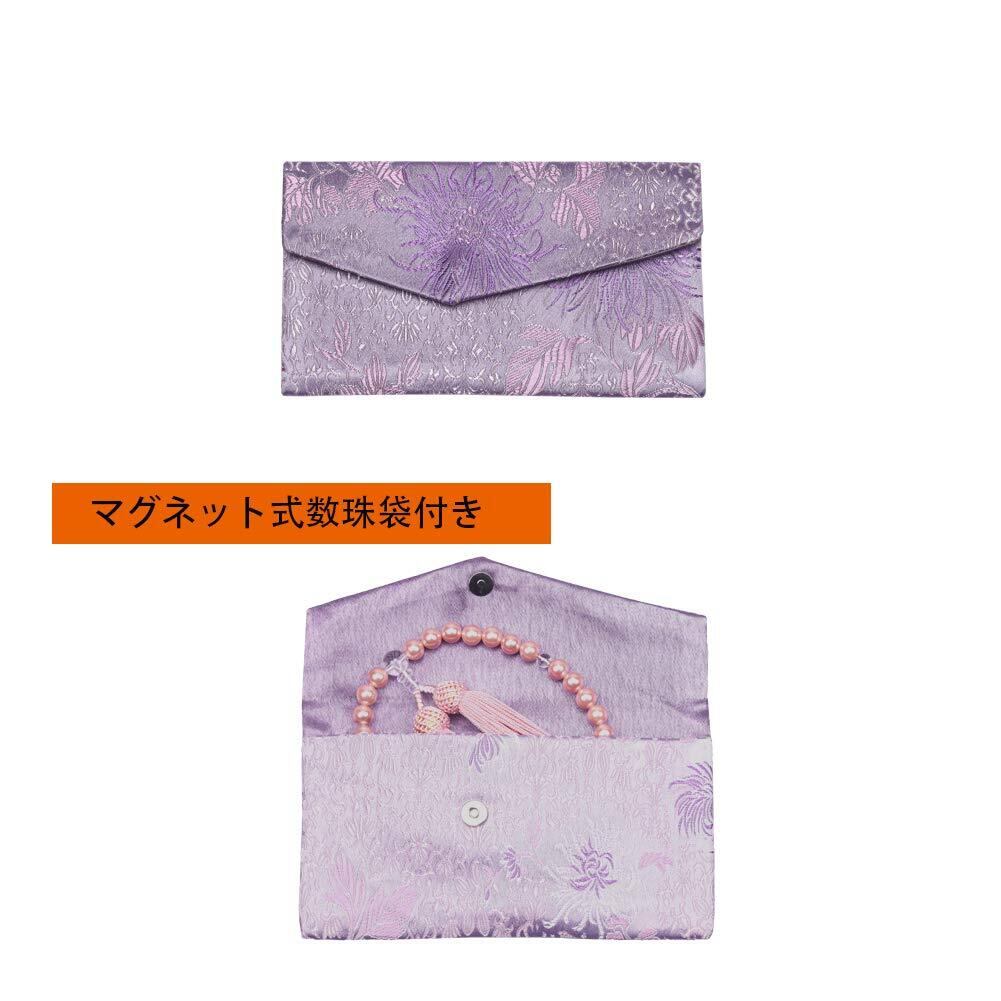高級なマグネット式数珠袋も付属しており、保管や携帯に便利です。お娘さんや奥さんへのプレゼントに最適!