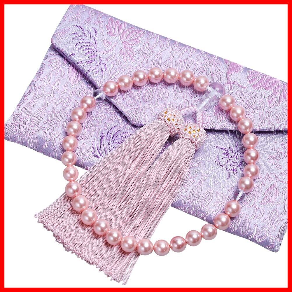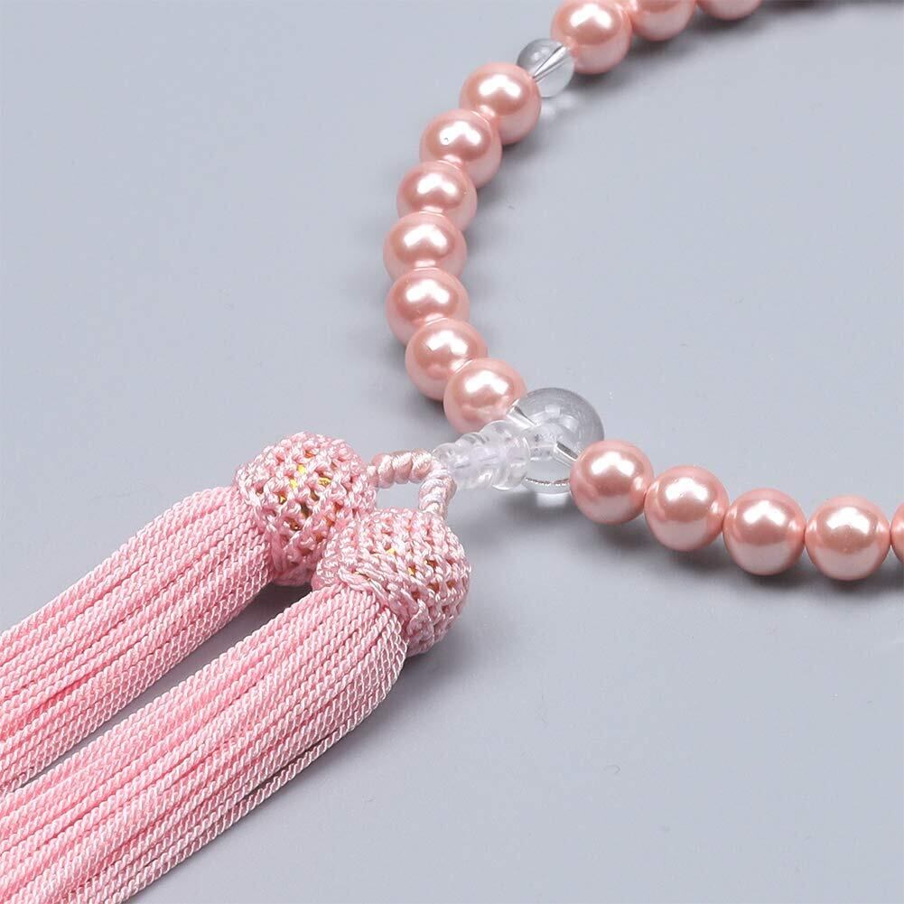 LEOBEE 貝パール 女性用数珠 マグネット式数珠袋付き 念珠 じゅず 手作り念珠 数珠ブレスレット 葬式 葬儀 墓参り 法事 念誦 全ての宗派で使用頂け (ピンク貝パール)