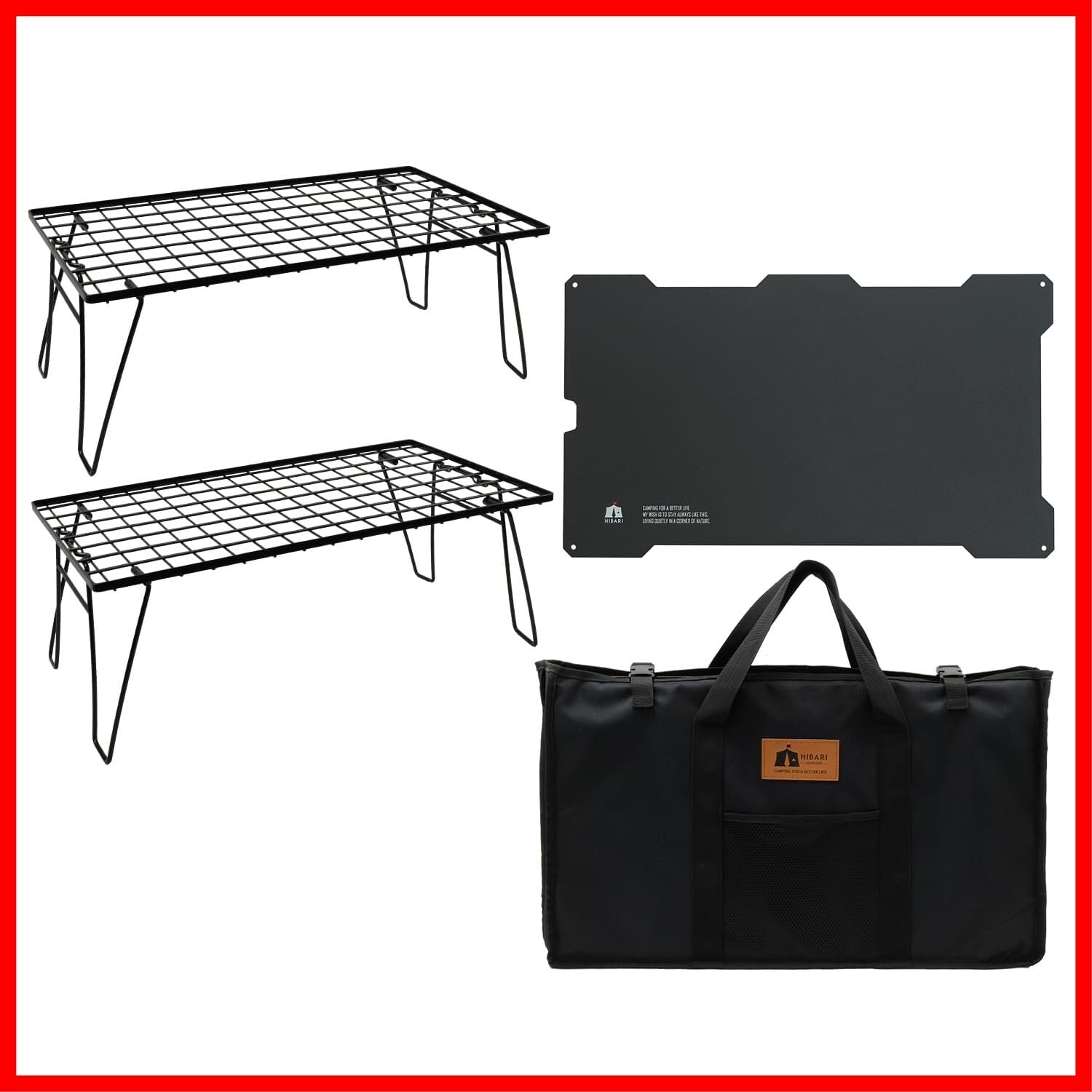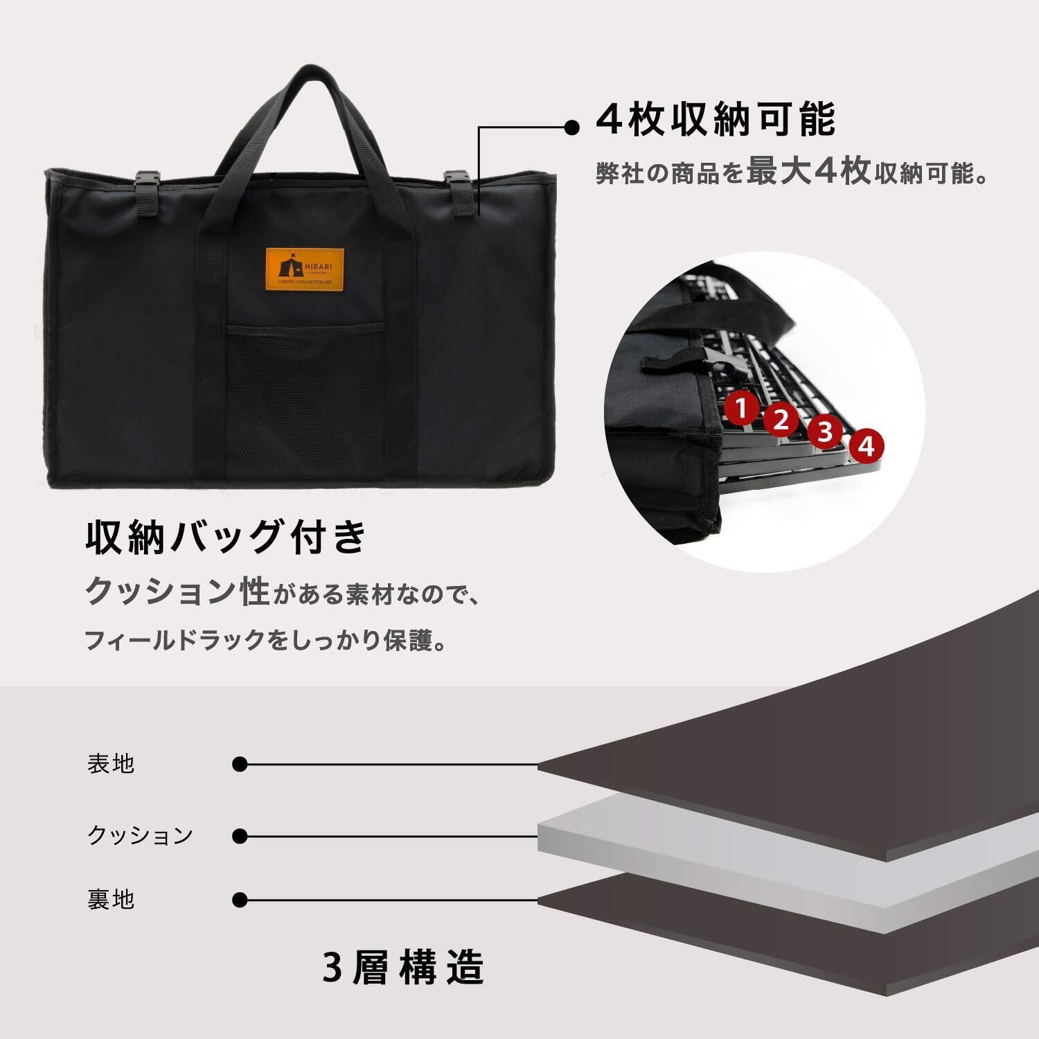 HIBARI フィールドラック キャンピングラック アルミ天板セット 収納ケース付き マットブラック キャンプ収納 コンパクト アウトドアワゴン アウトドアテーブル 折りたたみ テーブル ローチェアアウトドア キャンプテーブル おしゃれ 軽量 (ラック2枚+天板1枚セット)
