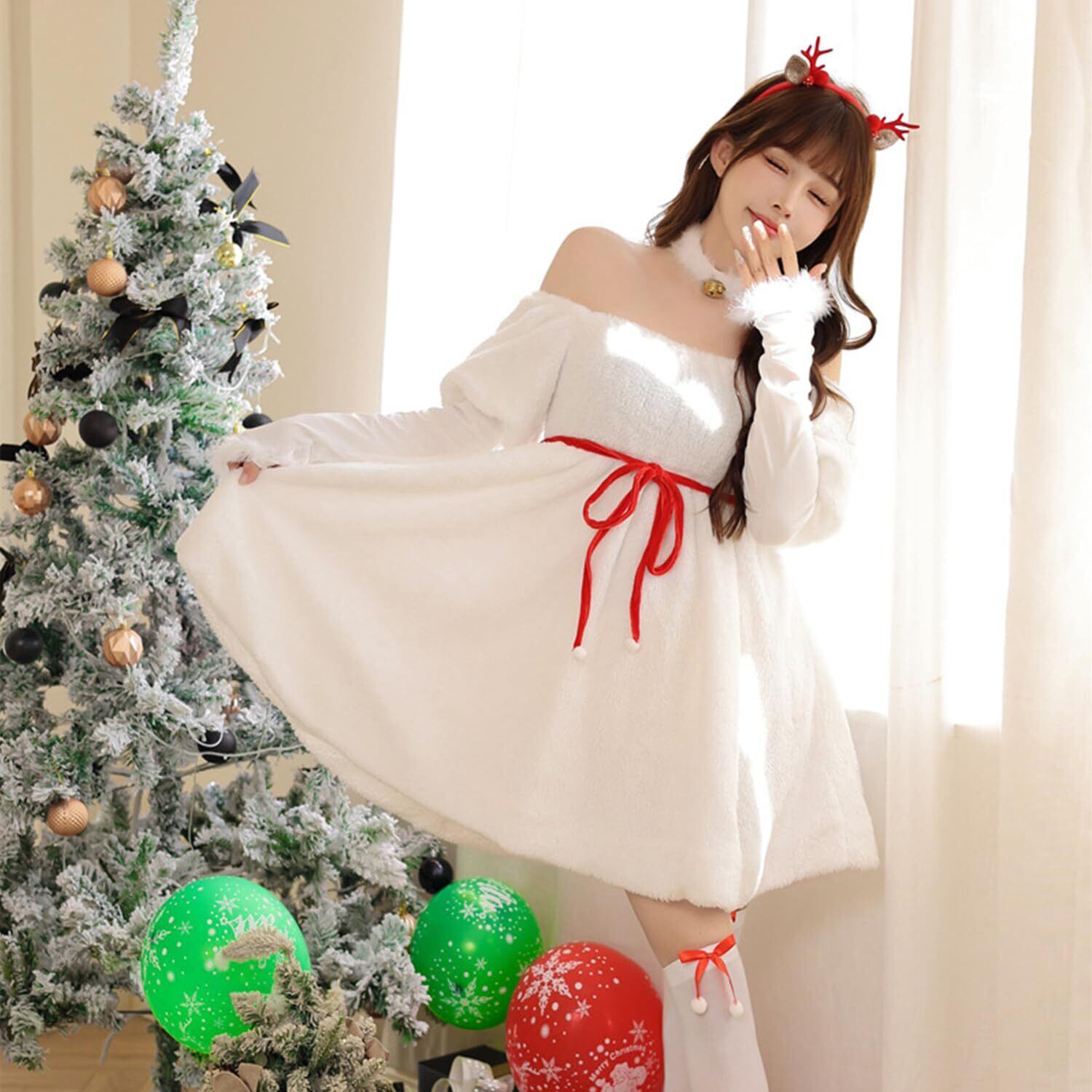 [JOMA E-Shop] サンタ コスプレ レディース 可愛い 雪だる バニーガール サンタコス 衣装 カチューシャ付き ふわふわ クリスマス サンタクロース 仮装 コスチューム 大きいサイズ チャイナ ワンピース おもしろ 新年会 | hananoki