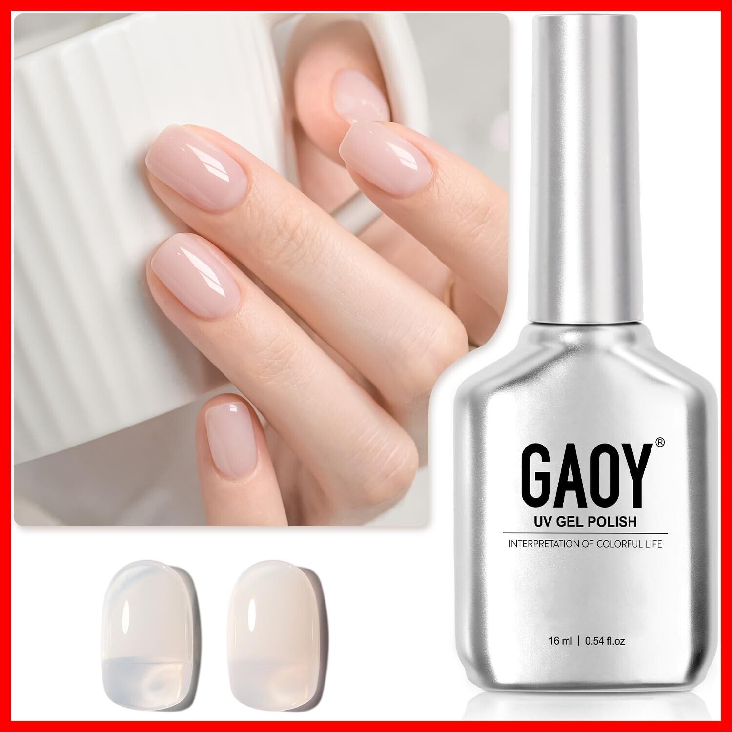 GAOY ジェルネイル シアーカラージェル ゼリーヌード 透明感 16ml UV・LED対応 ソークオフジェル ポリッシュタイプ セルフネイル(1968 ピュアヌード)