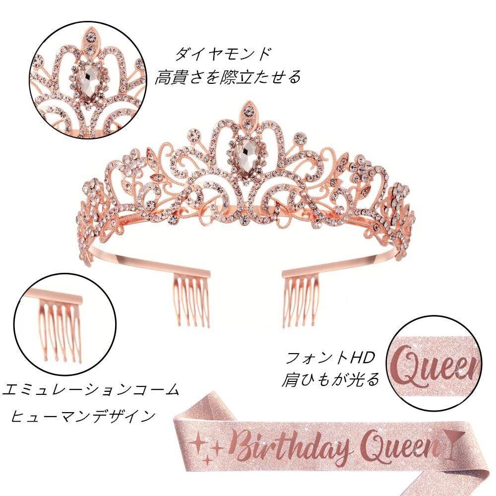 LIKENNY 誕生日 王冠 たすき ブローチ バースデー ケーキ 飾り キラキラ 王冠 パーティーグッズ 記念日 お祝い小道具 子供 女の子 女性 カチューシャ