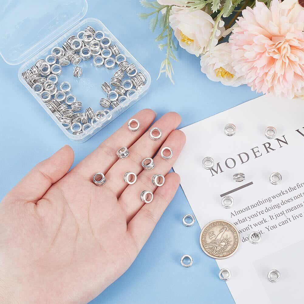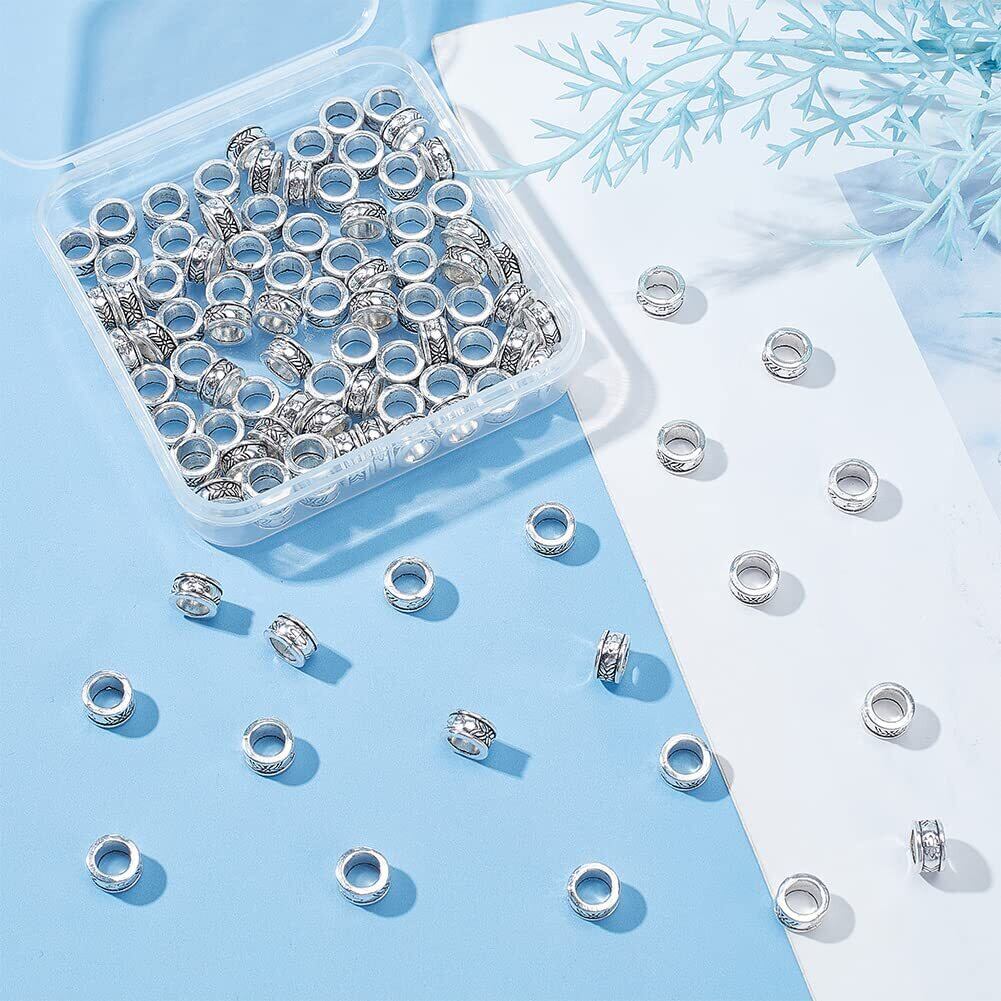 パッケージに含まれるもの:約100個の大きな穴のスペーサービーズは、DIYクラフトプロジェクトに十分な大きさの穴で、太いコードやヨーロピアンスネークチェーンを簡単に紐付けできます。