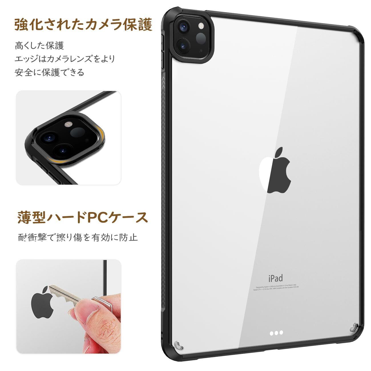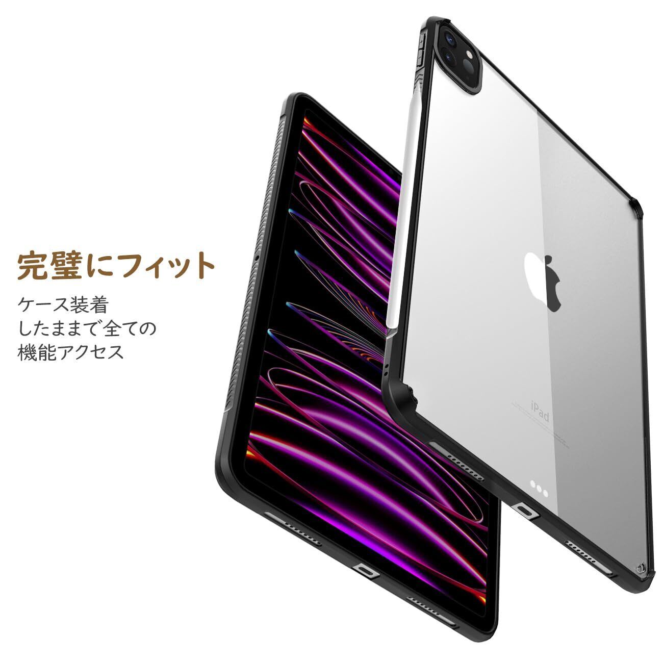iPad Pro 11 ケース 第4世代 2022 iPad Pro 11 ケース 第3世代 2021 TiMOVO iPad Pro 11 第4世代/第3世代 カバー 2022年 2021発売 TPU縁+PC背面ケース 第二世代Pencil 無色透明 ワイヤレス充電対応 軽量 一体感 耐衝撃 シンプル クリアケース ipad pro 11インチ ケース Black | hananoki