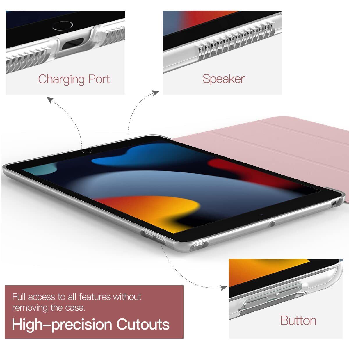 iPad 9世代 ケース iPad 9 2021 iPad 8 2020 iPad 10.2 ケース 2019 TiMOVO ipad 第9世代/第8世代/第7世代 ケース 10.2インチ 半透明 ハードカバー PUレーザー 開閉式 三つ折り スタンド マグネット オートスリープ 耐衝撃 軽量 落下防止 精密設計 着脱簡単 ipad10.2 ケース (2021/2020/2019) ライトピンク