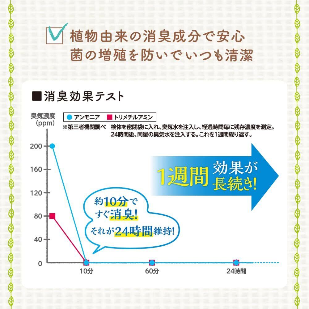 1週間続く消臭+抗菌・・・植物由来の消臭成分で安心。菌の増殖を防いでいつも清潔! パルプからつくられたマットだから優れた通気性!・・・通気性はもちろん、ふわふわだからもぐりやすい!