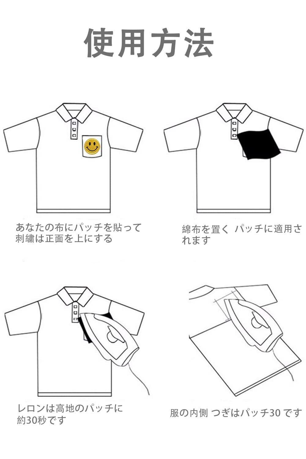 【使用方法】アイロン不要:ワッペン背面のシールを剥がしてぎゅッと貼るだけなので簡単に貼り付け完了;アイロン接着:熱接着専用の生地用ノリをワッペンの裏面全面に貼り付けてあります,端までしっかりとアイロンを掛けていただければ簡単に接着できます;※強く付けたい場合は、手縫いでの取り付けをお勧めいたします。