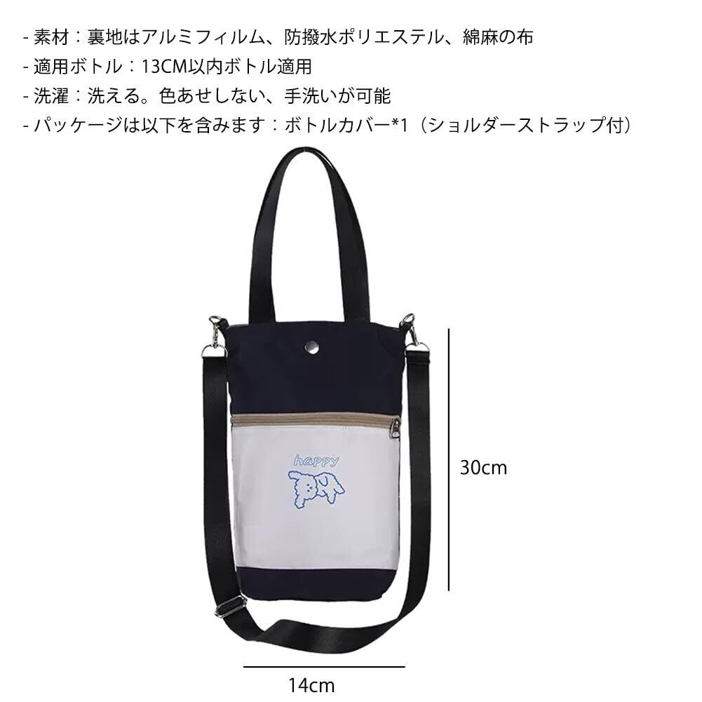 【仕様】製品名前:2wayのボタン式・ジッパー袋付きボトルカバーのバッグ、●素材:裏地はアルミフィルム、防撥水ポリエステル、綿麻の布。●スタイル:ブルー・イヌ直径14cm。●サイズ:14*30cm、適用ボトル:13CM以内ボトル適用。●パッケージは以下を含みます:ボトルカバー*1。