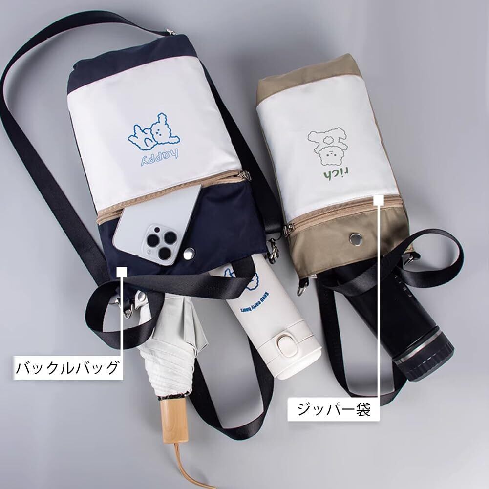 YUYAKESHI 水筒カバー ボトルカバー 傘入れ 小物いれ 水筒用 通勤 ボタン式 ジッパー付き袋 持ち歩き ショルダーストラップ 可愛い 2way 13CM以内ボトル適用(ブルー・イヌ直径14cm)