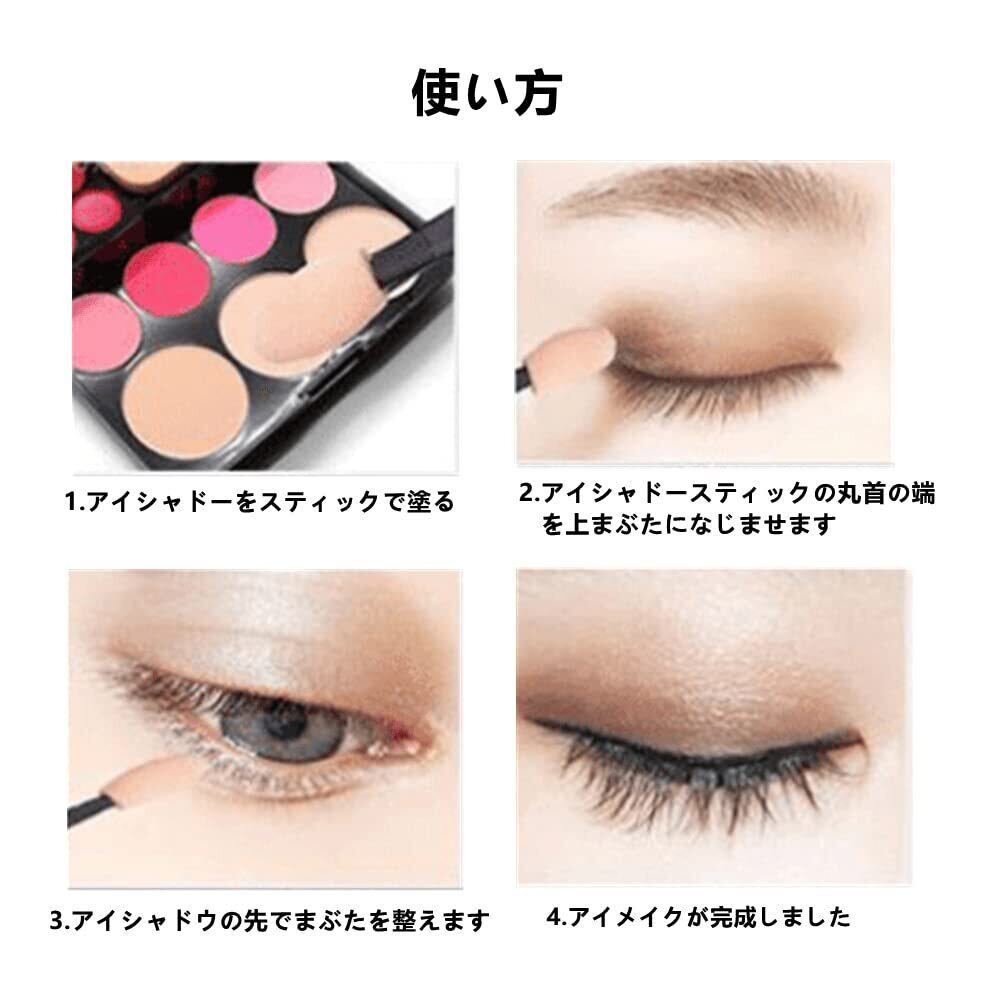 【使用しやすい】:両面ブラシ構造。異なる色のアイシャドウに使い分けできます。コンパクト、携帯に便利です,財布、眼鏡、ハンドバッグ、メイクバッグなどにお使いいただけます。