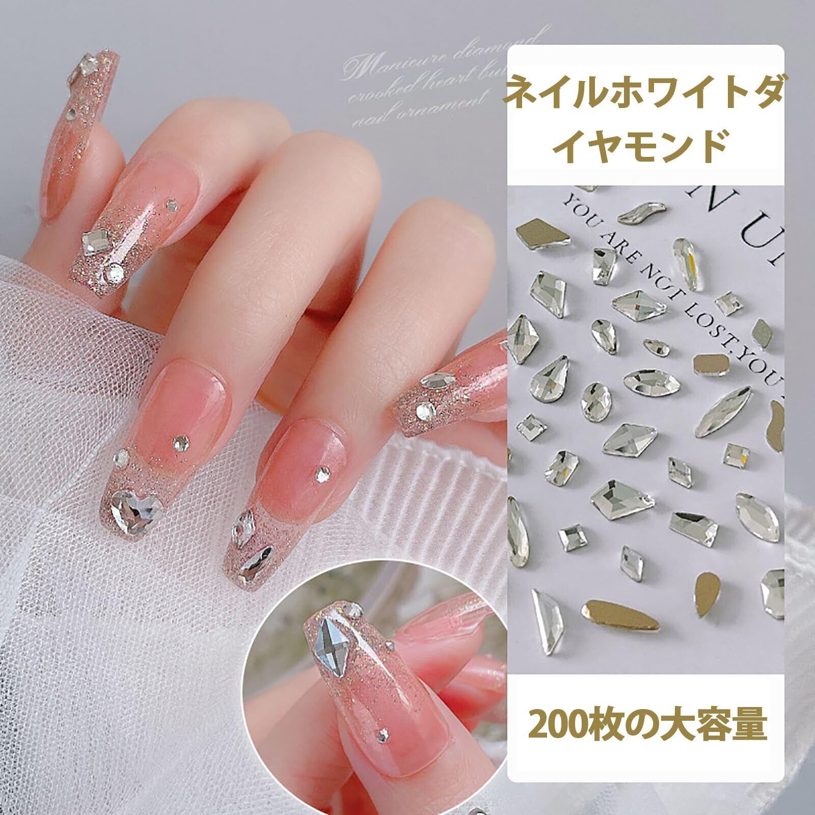 【ネイルホワイトダイヤモンド】1ボックス ラインストーン、 200個大量ストーン、ガラスストーン、白色、12種あります、いろんなデザインがあります。ネイル、小物のデコレーションにぴったり、ネイル・スマホケース・アクセ・ジュエリー・髪留め・服飾小物・雑貨のデコレーション用 裏面が平らなのでボンド等で貼り付けてデコレーションして下さい。ラインストーン、家庭やネイルサロンでもご使用可能で、プレゼントとしても最適。