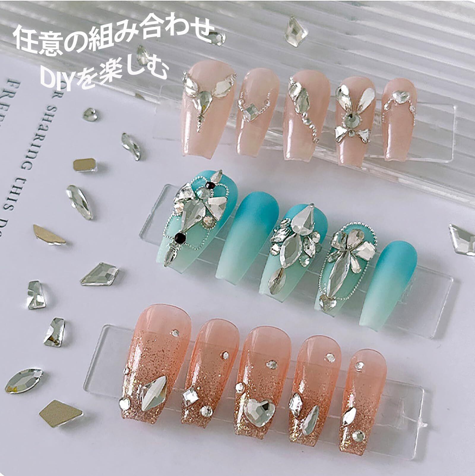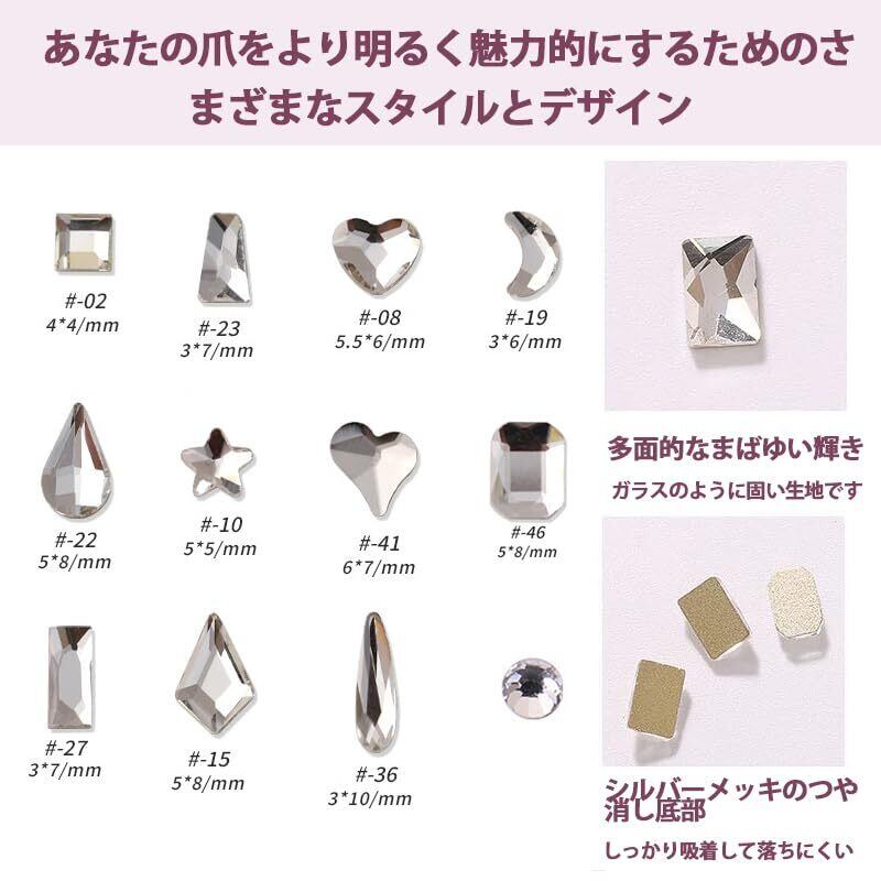 【高品質ネイルアート素材】高品質のガラス製で、非常に硬く、壊れにくく、輝きと明るさが長持ちし。人気のネイルパーツ、無毒、無気味の高品質、肌に優しく健康的です、安全に使用できます。ネイルパーツ ストーン、様々なネイルや手工芸品のデザインに使えます。