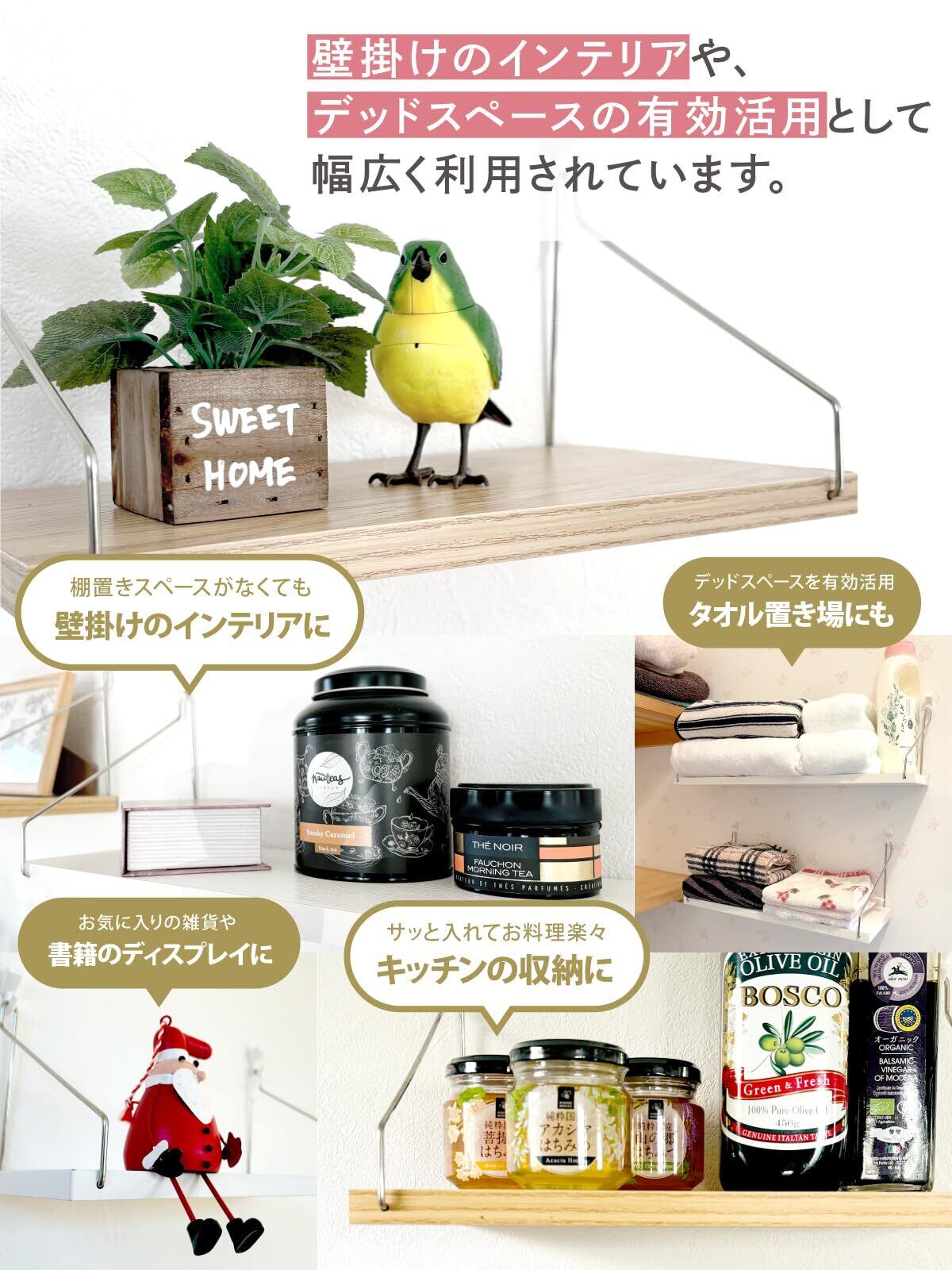 【商品仕様】■サイズ:幅30cm or 35cm or 40cm or 50cm×奥行15cm×高さ15cm ■カラー:ホワイト/ナチュラル/ダークブラウン/ブラック ■セット内容:ウォールシェルフ本体×1、取付け用ネジ×2、石膏ボード用アンカー×2、ピンフック×2、日本語取扱説明書 ■材質:木材 ステンレス ■耐荷重:3-10kg