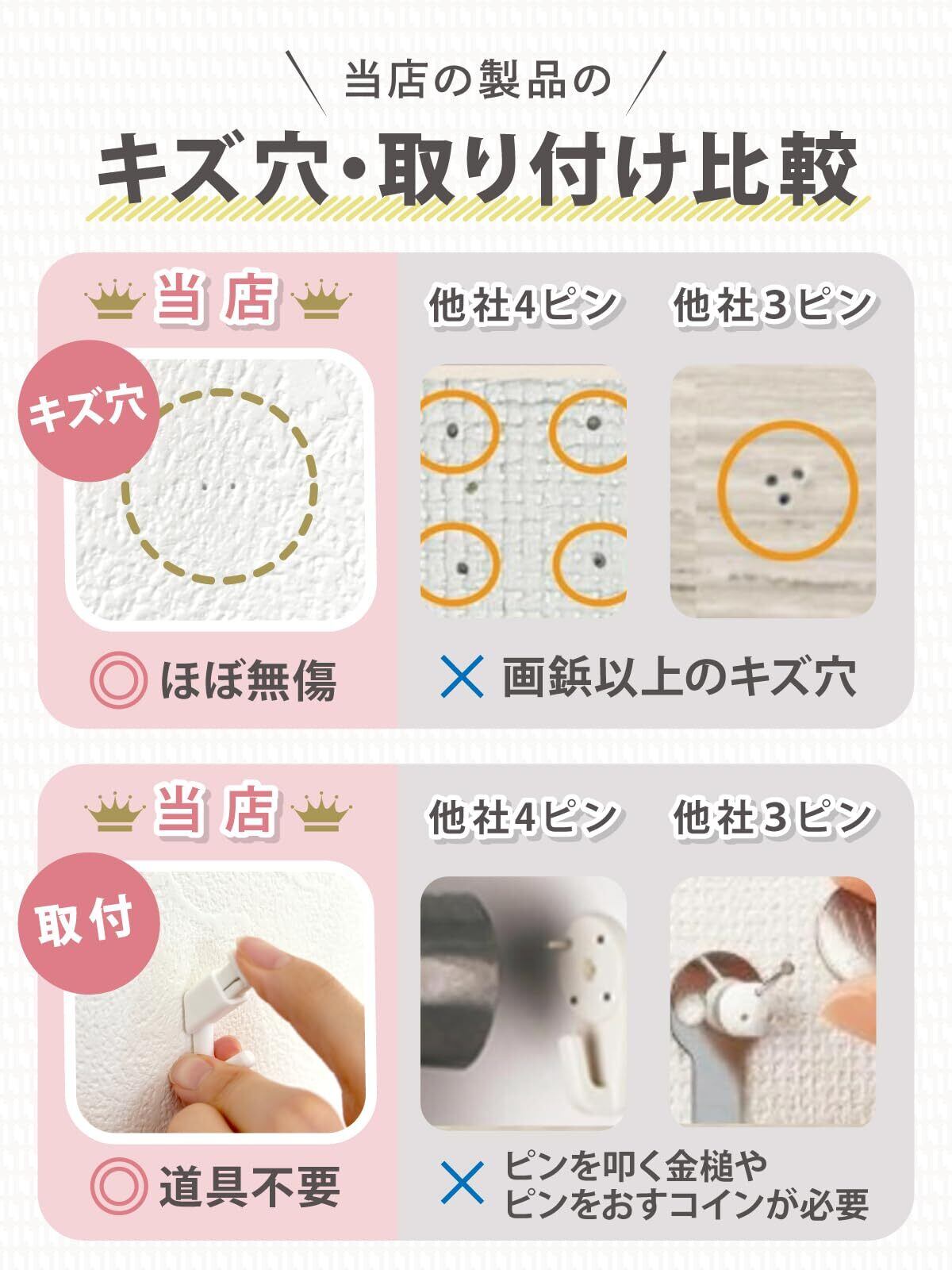 【優れた耐荷重】当店オリジナルの超極細ピンフックで取り付けた場合、耐荷重にも優れています。2ℓのペットボトル2本を乗せても大丈夫!※ご注意※耐荷重表記は、当社特製のピンフックで取り付けた場合に限ります。クリアのフックシールでの耐荷重ではございません。