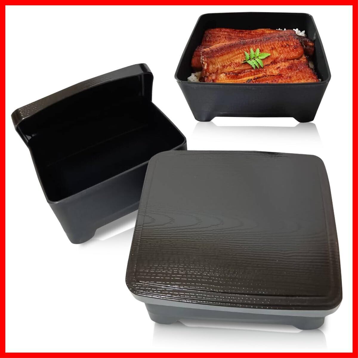 【通常のうな重を家庭用、テイクアウト用にアレンジした商品です】 商品サイズ 162mm×143mm×H75mm 重さ 約150g 蓋部分 ABS樹脂 本体 PP樹脂