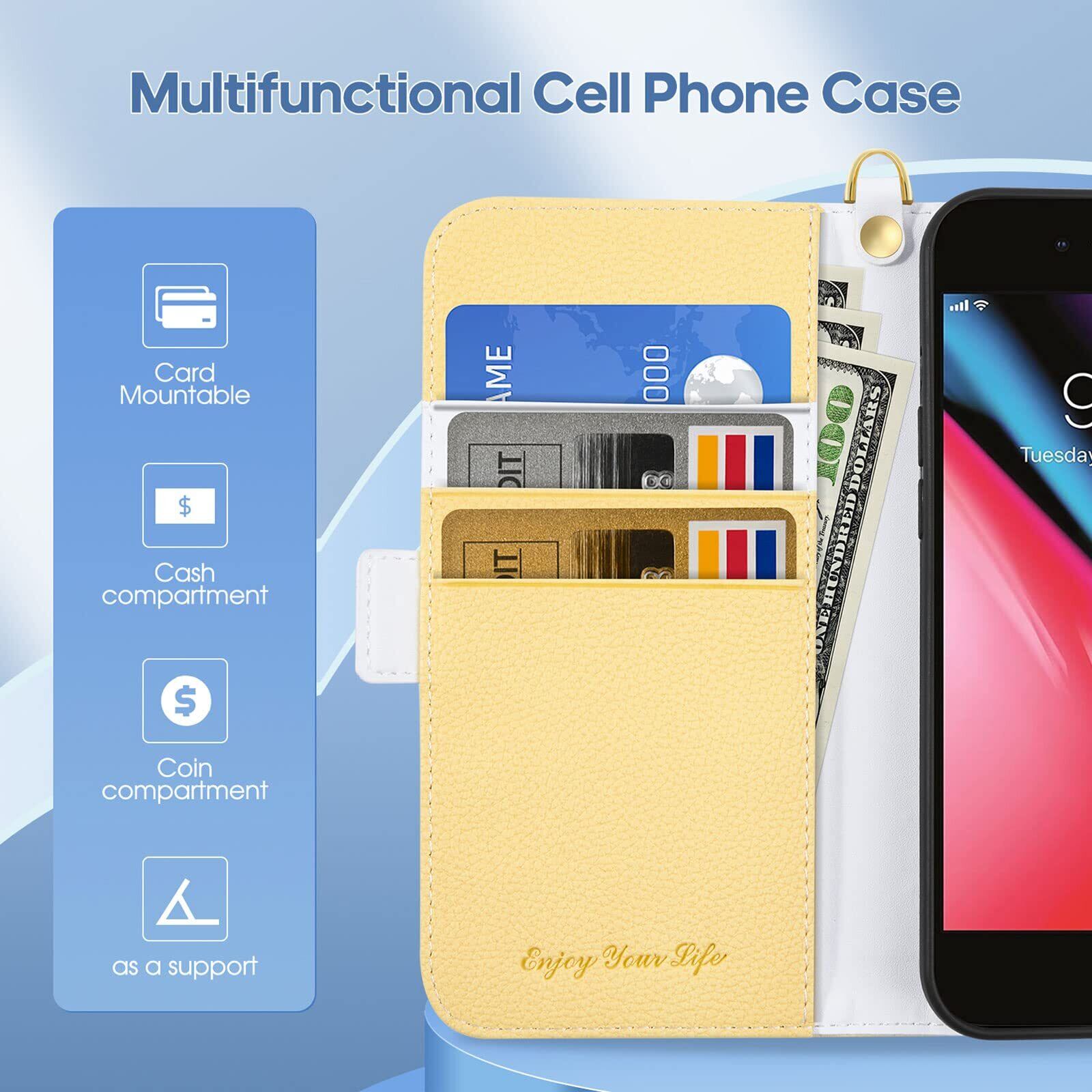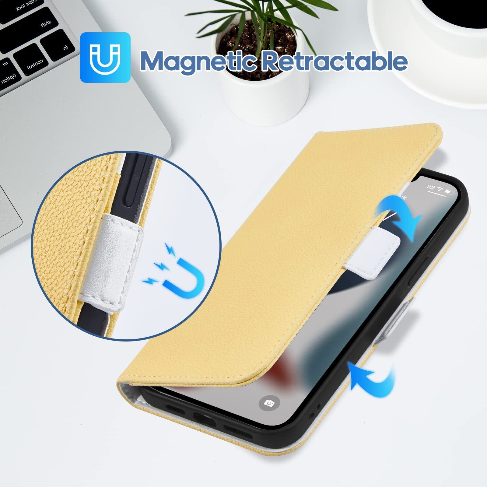 ALSDKEZI iPhone SE(第三世代)/iPhone SE(第二世代)/iPhone 8/iPhone 7 (4.7インチ) ケース 手帳型, 人気おしゃれ財布型カード収納 携帯ケース, ライチ柄高質PUレザー 良い触り心地 ケース サイドマグネット式 スマホケース スタンド機能 耐衝撃 保護カバー 大人 男女兼用 (イエロー/Yellow)
