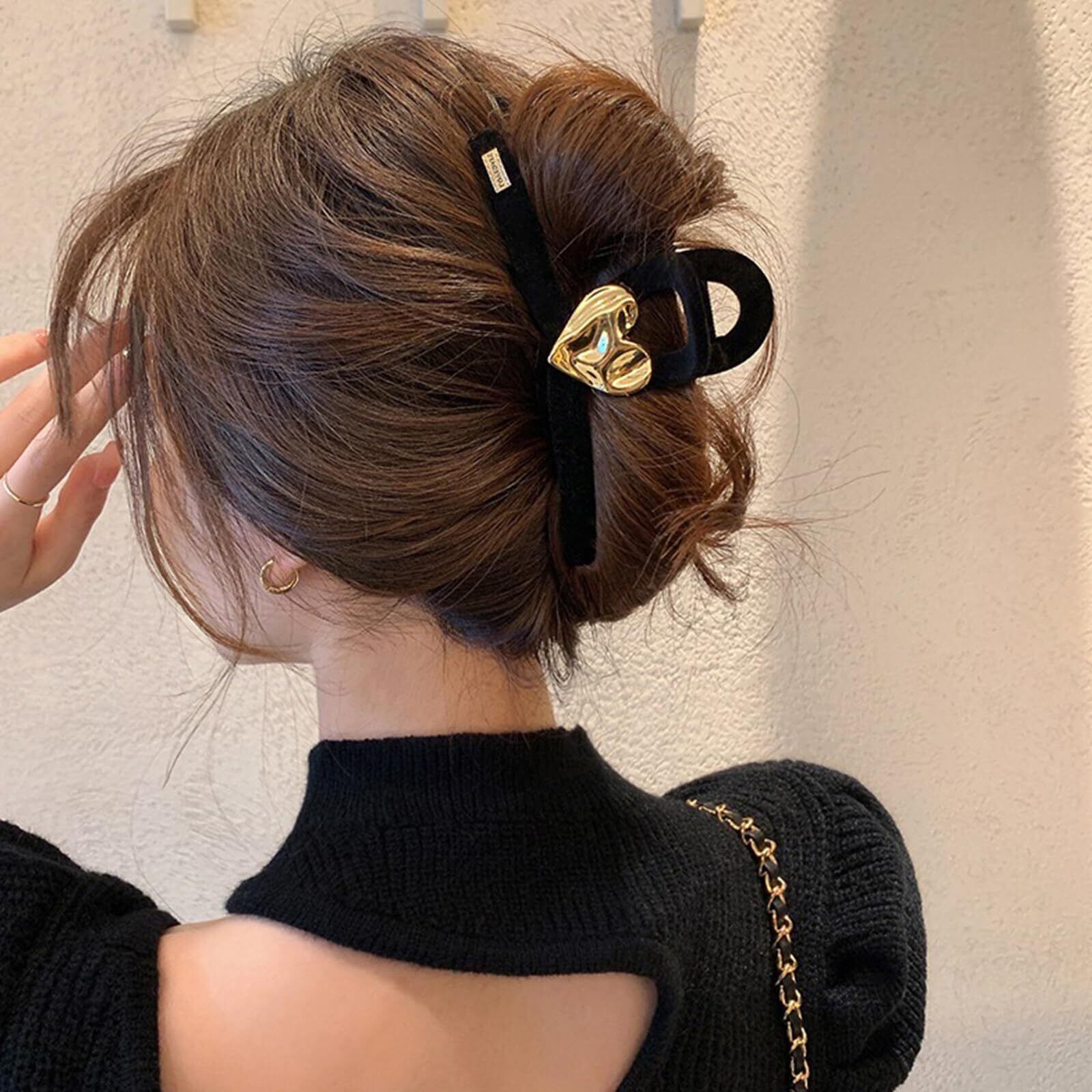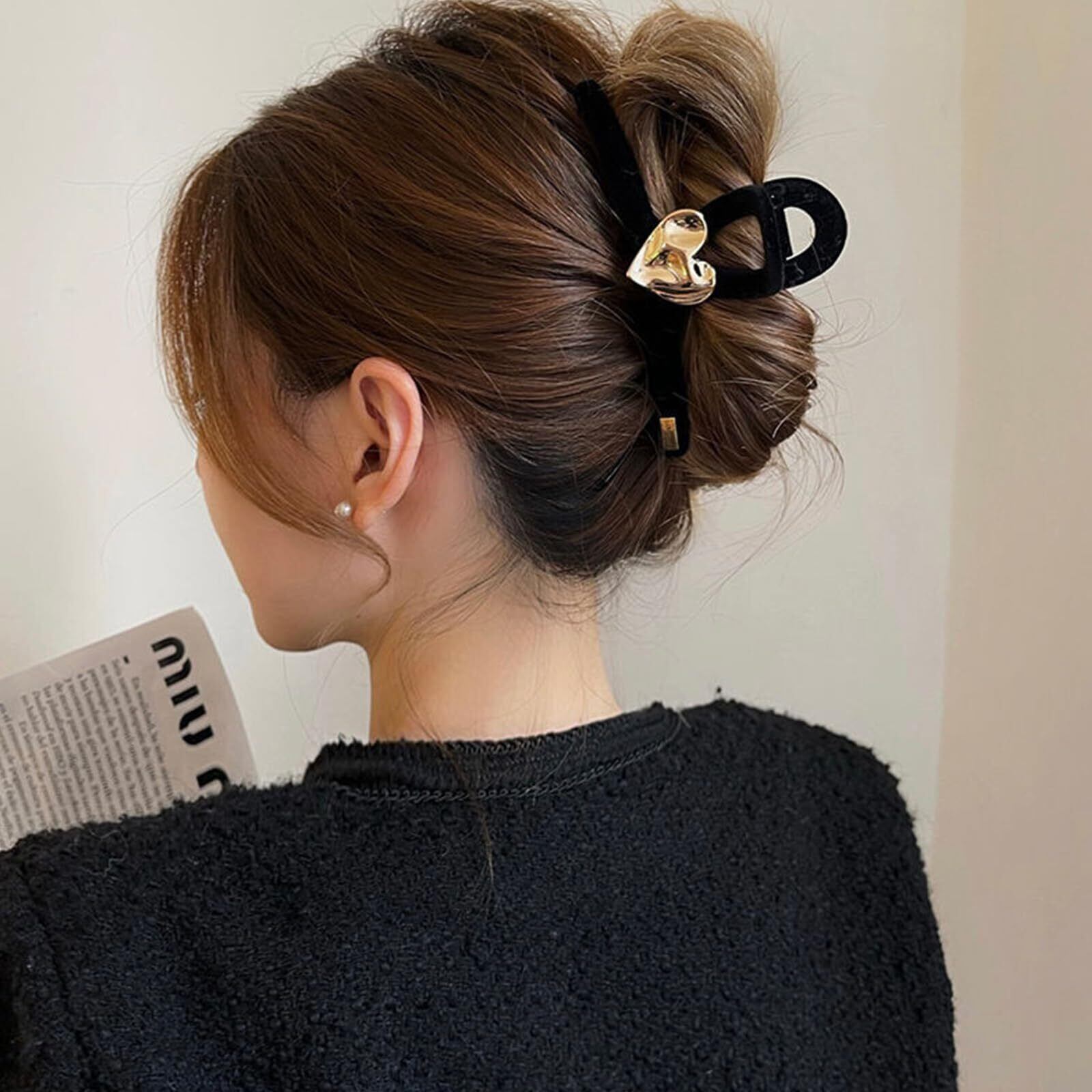 happykau ヘアクリップ 大きめし 髪留め バンスクリップ 大きめ 髪留め クリップ しっかり ヘアアクセサリー 大人 韓国 可愛い おしゃれ 贈り物 (ブラック)