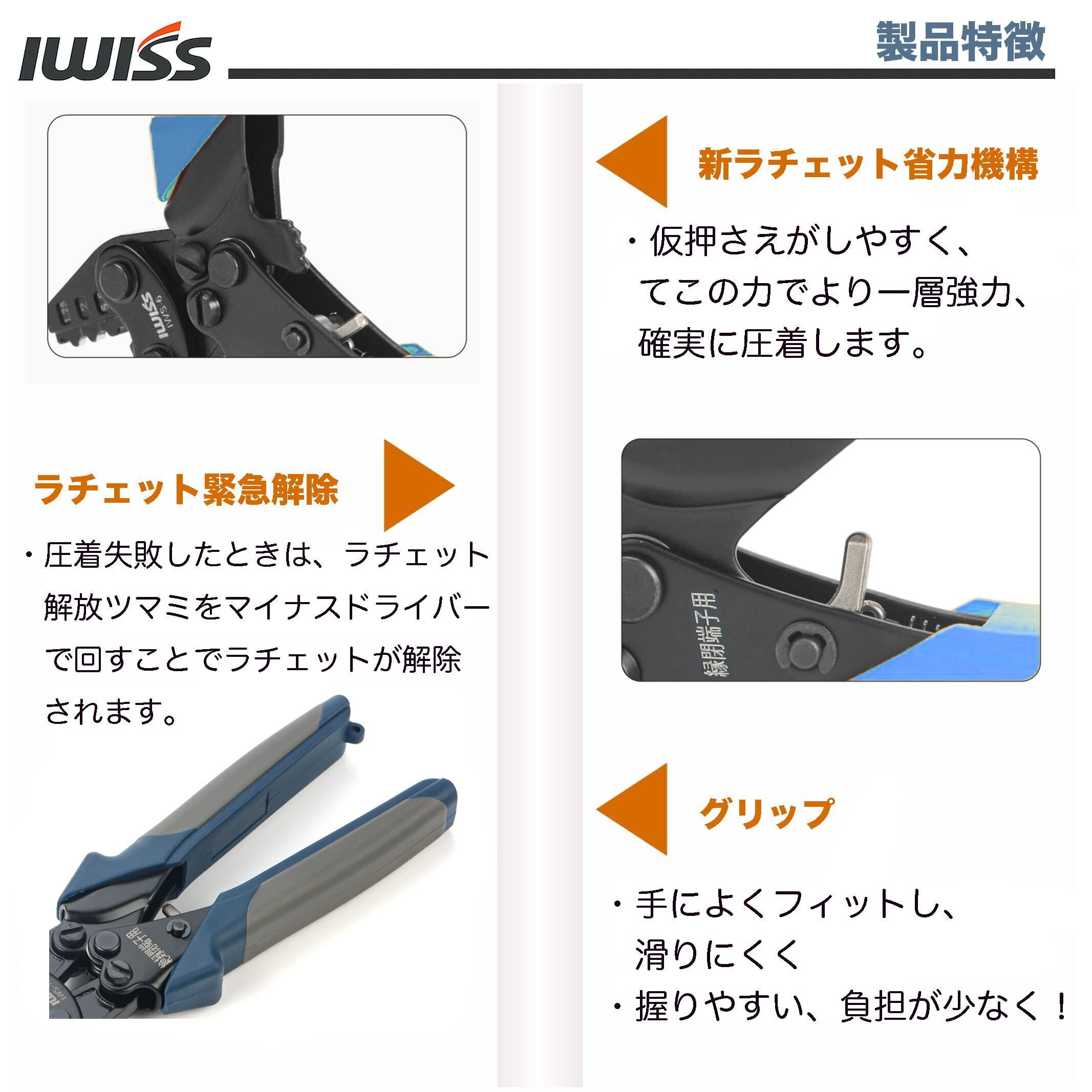 アイウィス(IWISS) 絶縁被覆付閉端接続子 圧着工具 ラチェット式 JIS準拠 CE-1 / CE-2 / CE-5用 IWS-125