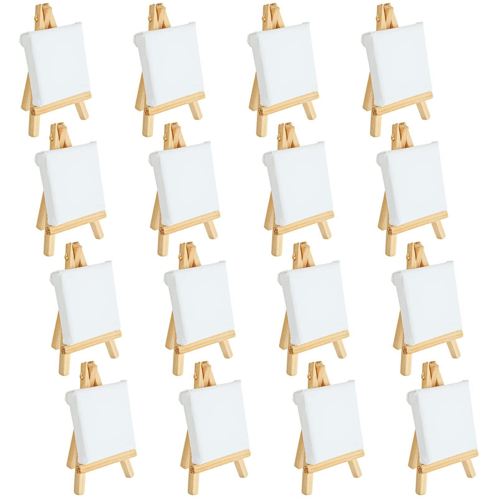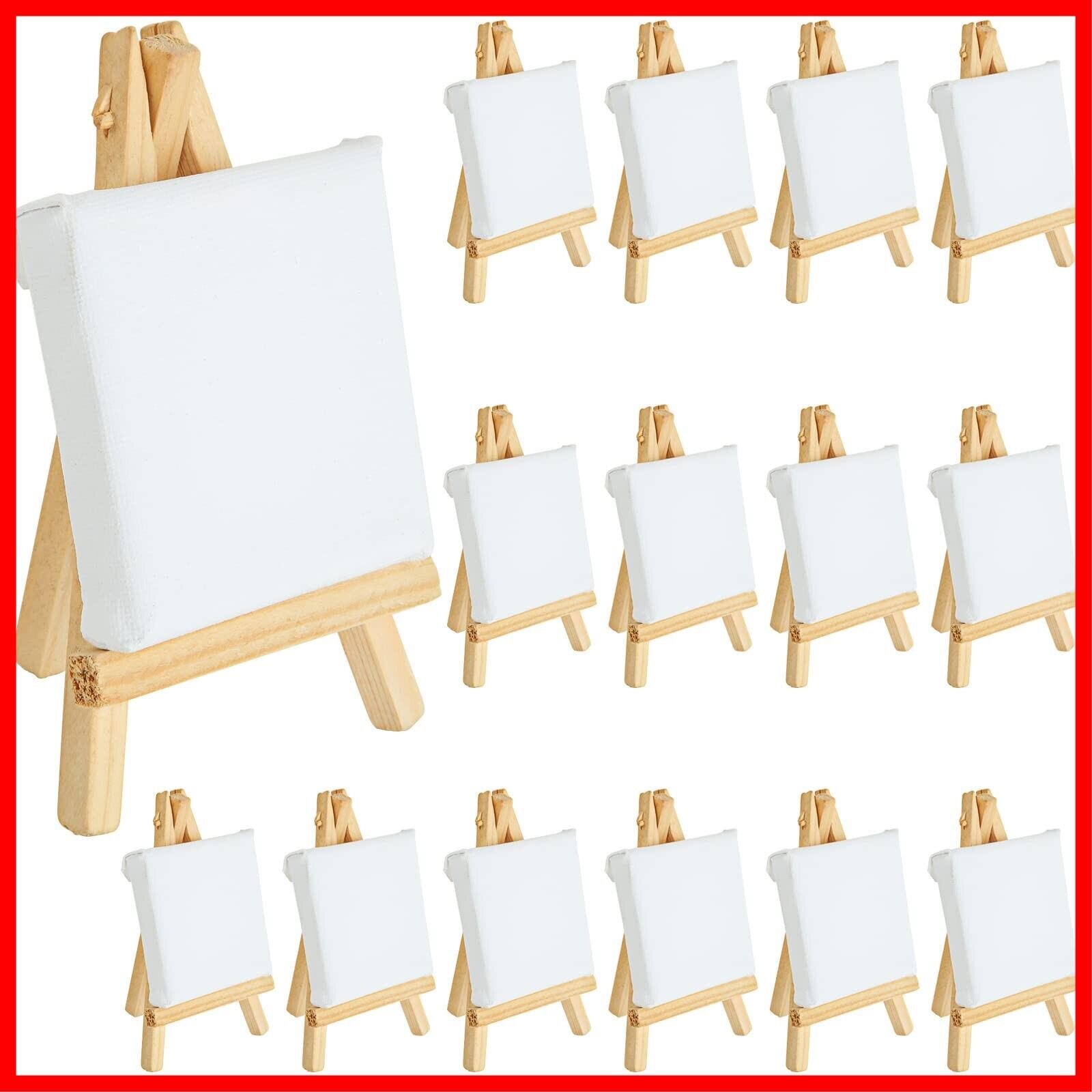 RILIHII ミニ 張りキャンバス セット イーゼル付き 芸術絵創作 現代油絵 美術装飾 水彩絵・アクリル絵・油絵に適用(7cmミニキャンバス16枚+木製卓上イーゼル16個 )