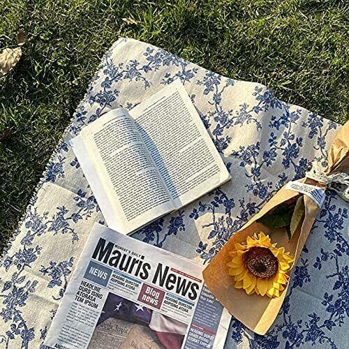 レジャーシート 布 おしゃれ ピクニックシート ピクニックマット 青藍色花柄の布デザイン 北欧風 インスタ映え 薄型 花見 遠足 キャンプ用品 写真撮りの背景 2~3人用 中サイズ 140×145CM | hananoki
