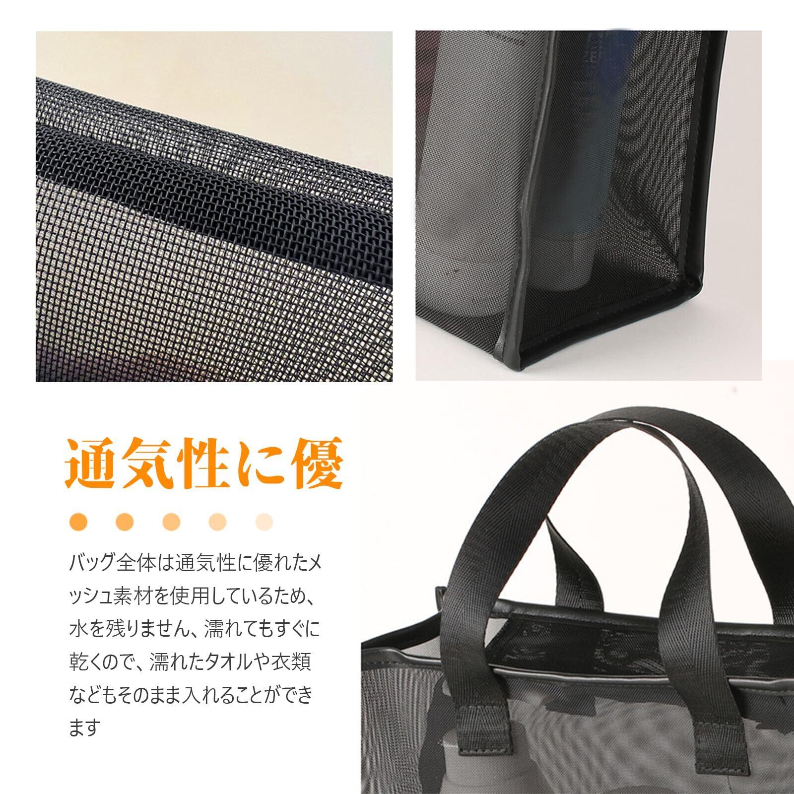 【通気性に優】バッグ全体は通気性に優れたメッシュ素材を使用しているため、水を残りません、濡れてもすぐに乾くので、濡れたタオルや衣類などもそのまま入れることができます。