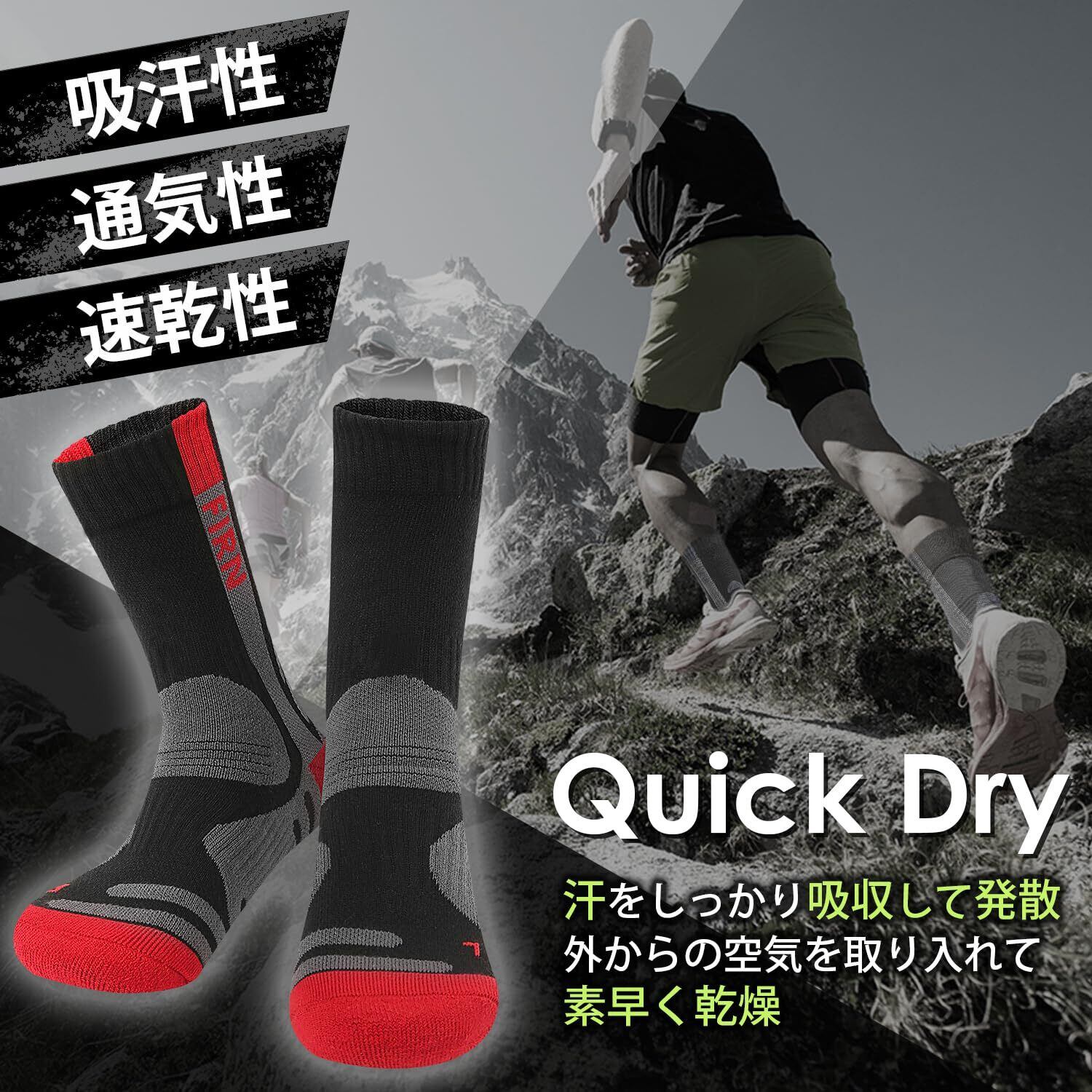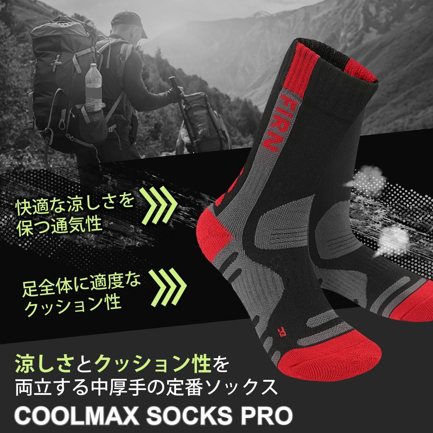 [FIRN] フィルン クールマックス ソックス プロ 高機能 アウトドア 靴下 ハイキング トレッキング 通気 吸水速乾性 軽量 中厚手 登山 クッション 水ぶくれ防止 クルー丈 スポーツ キャンプ 男女兼用
