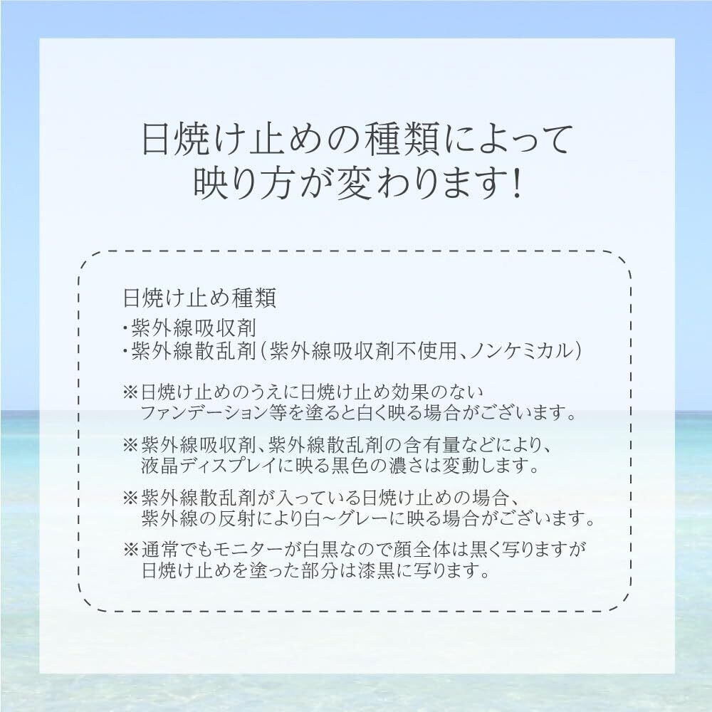 【日焼け止めを塗った所を視覚化】UVカメラとUV検出ミラーを使用すれば日焼け止めの跡が見えるので、塗り忘れがあればひと目で分かります。これらを使用する事で、日焼け止めを綺麗に塗ることが出来ます。