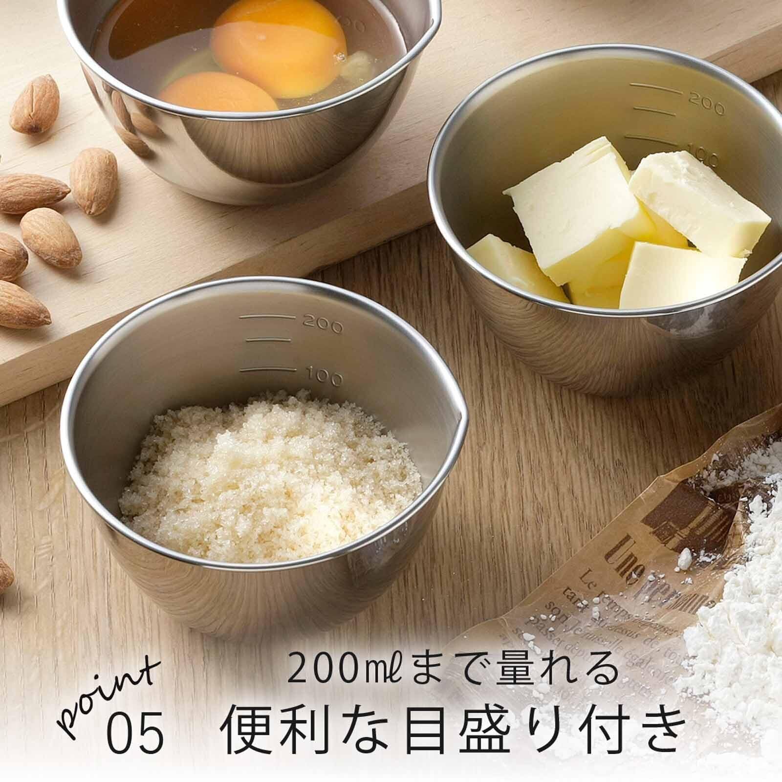 下村企販 ボウル 270ml 3個組 【日本製】 注ぎ口付き 目盛付き 食洗機対応 下ごしらえに便利 小分け ボール 容器 ステンレス 28867 燕三条