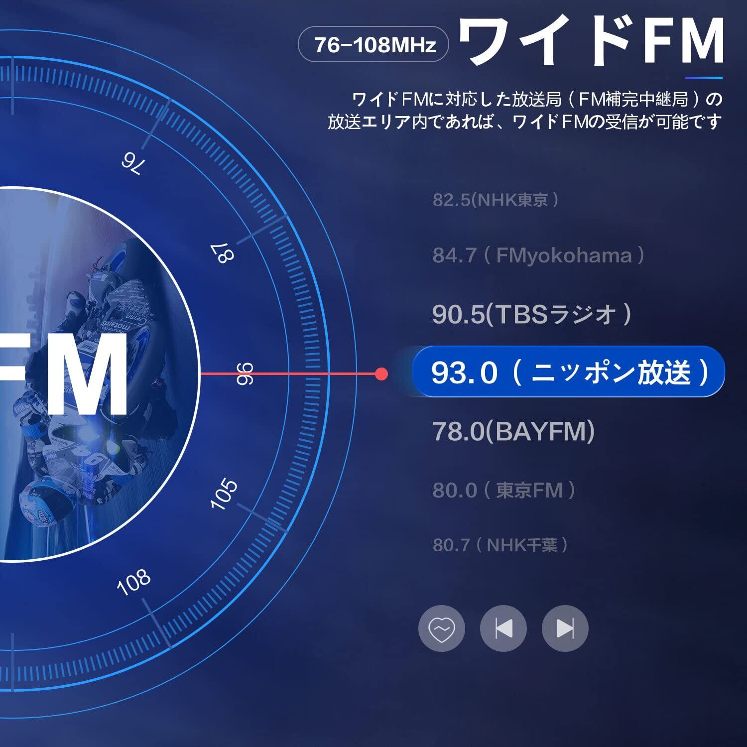 「ワイドFM搭載&Siri音声コマンド&IPX6防水インカム」FMラジオ機能付き、周波数は76MHz~108.0MHzとなりますので、日本全国の放送は受信可能です。ソロツアーでも寂しくないです。siriやGoogleなどの音声も対応できます、いつでもどこでも音声アシスタントを呼び出すことができます。非常に便利です!携帯とつないでナビゲーションを聞いて、旅行は道に迷いません。それに、IPX6防水ので、バイクツーリング中に突然の雨も心配いりません!※豪雨などの極端な天気では使用しないでください。また、大きな機能ボタンが備えていますので、冬用の厚いグローブをしたまま、操作も非常に便利です!