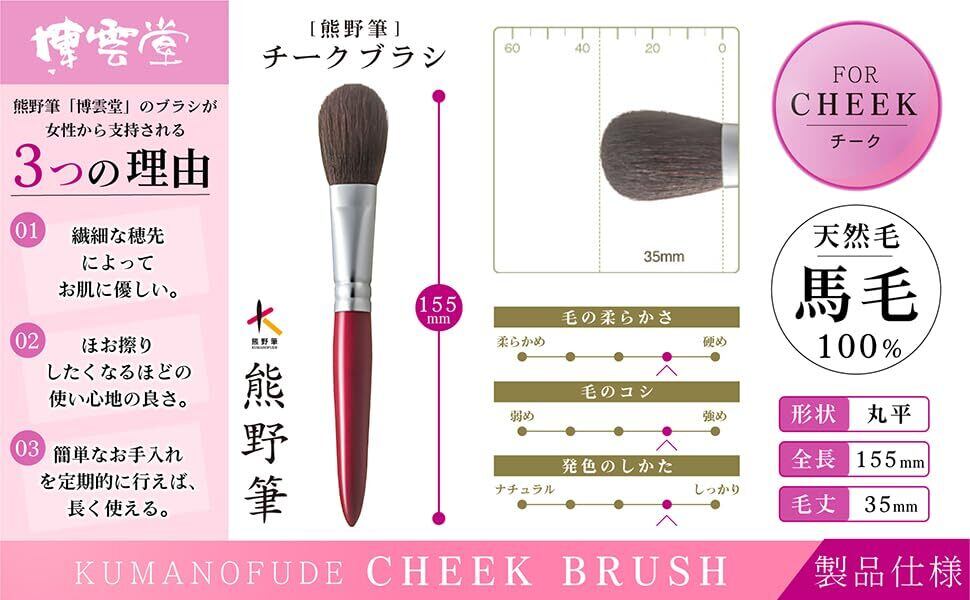 博雲堂 熊野筆 チークブラシ 国産 手造り フェイスブラシ メイクブラシ 化粧筆 丸平 高耐久 お手入れ簡単 (チークブラシ)