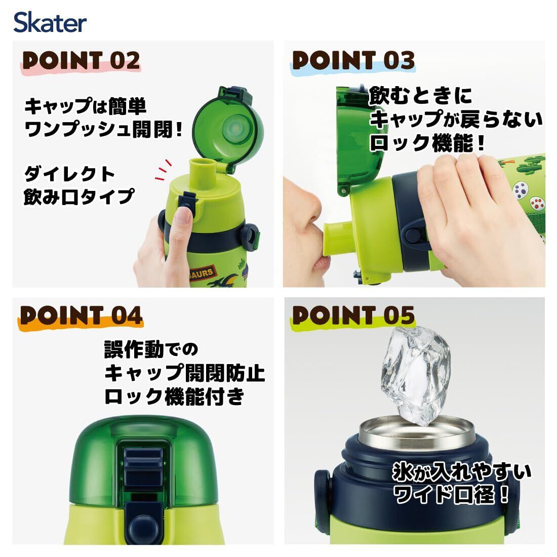 スケーター(Skater) 子供用 ステンレス 水筒 直飲み 480ml ディノザウルス 子供に優しい軽量タイプ 男の子 保冷専用 恐竜 3D立体プリントwaterbottle スポーツボトル かわいい キッズ 子供 こども 水瓶 SDPV5-A | hananoki