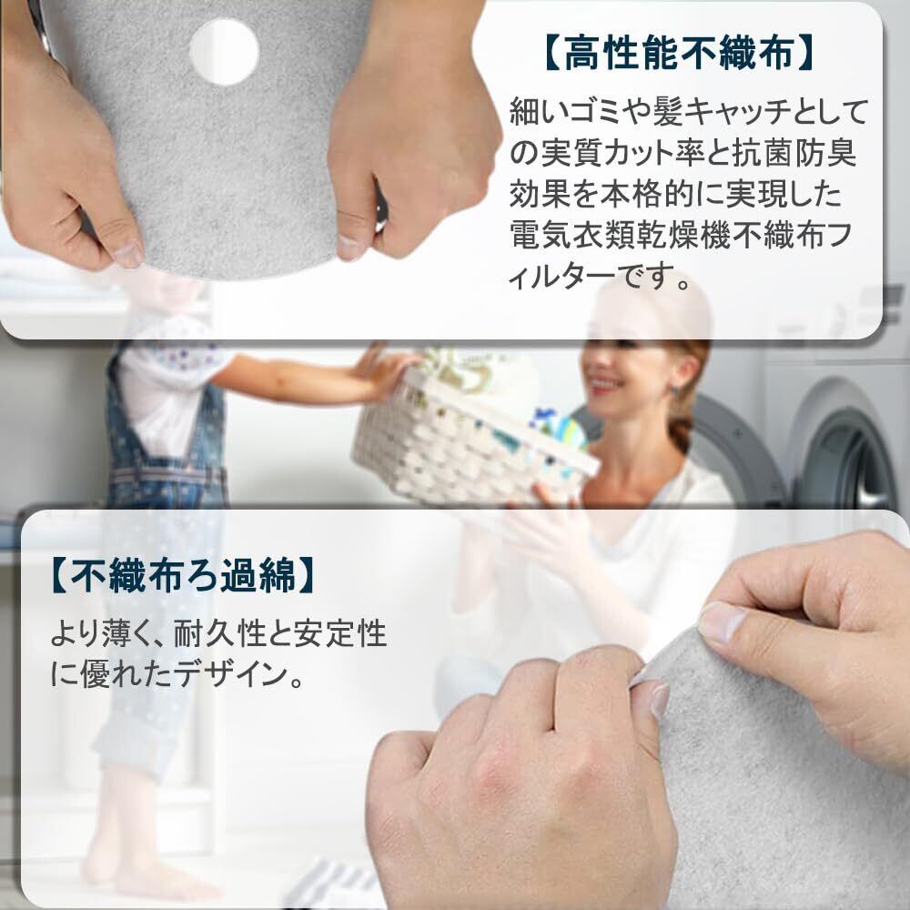 【高品質の素材】高性能不織布素材は、本来求められる花粉取り、細いゴミや髪キャッチとしての実質カット率と抗菌防臭効果を本格的に実現した電気衣類乾燥機不織布フィルターです。