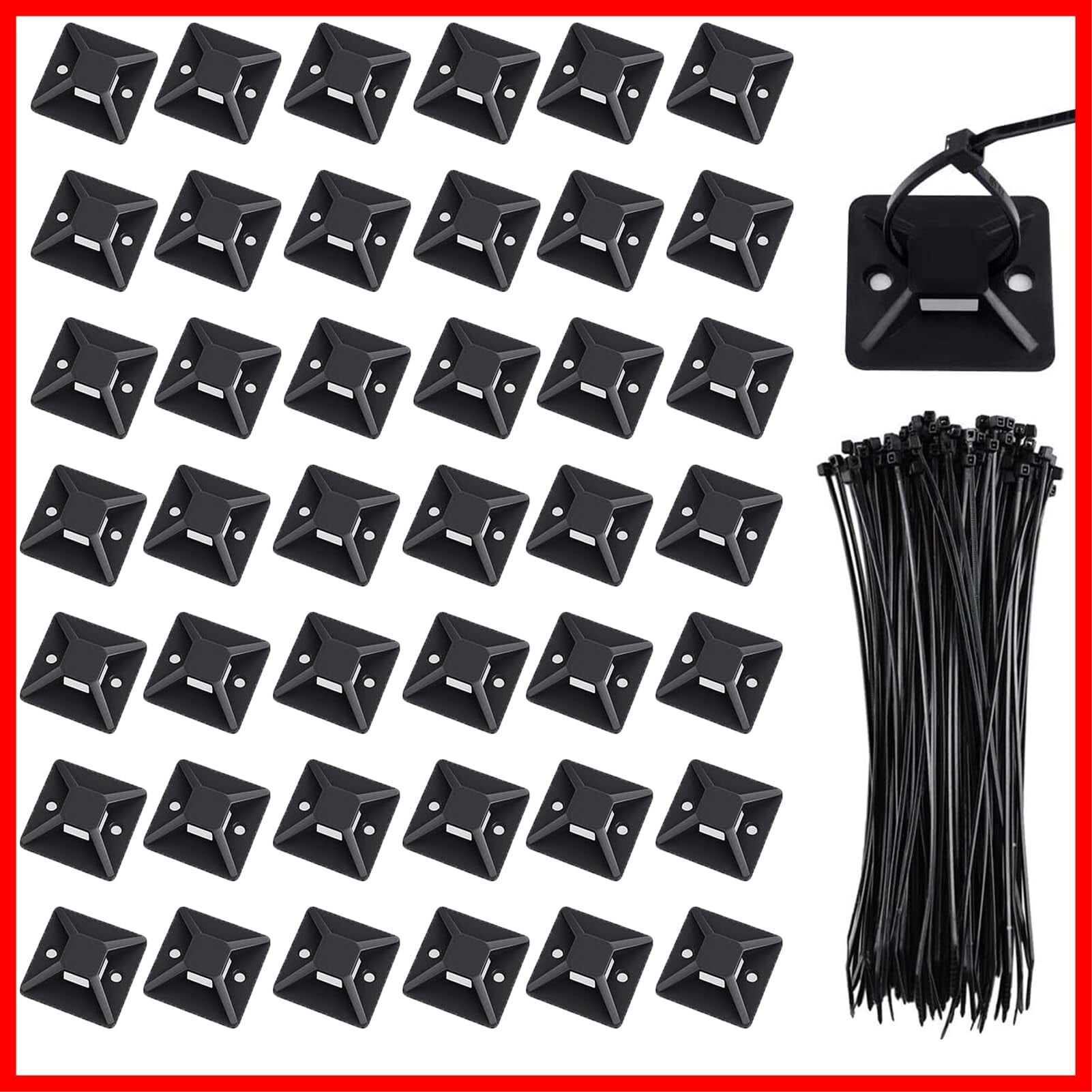 ケーブルタイ マウントベース ナイロン結束バンド 50個 セット ブラック ナイロンケーブルストラップ 強力粘着テープ付き 配線 固定具 ケーブル コード 収納 整理 耐熱 耐候性 18mm By Viaky
