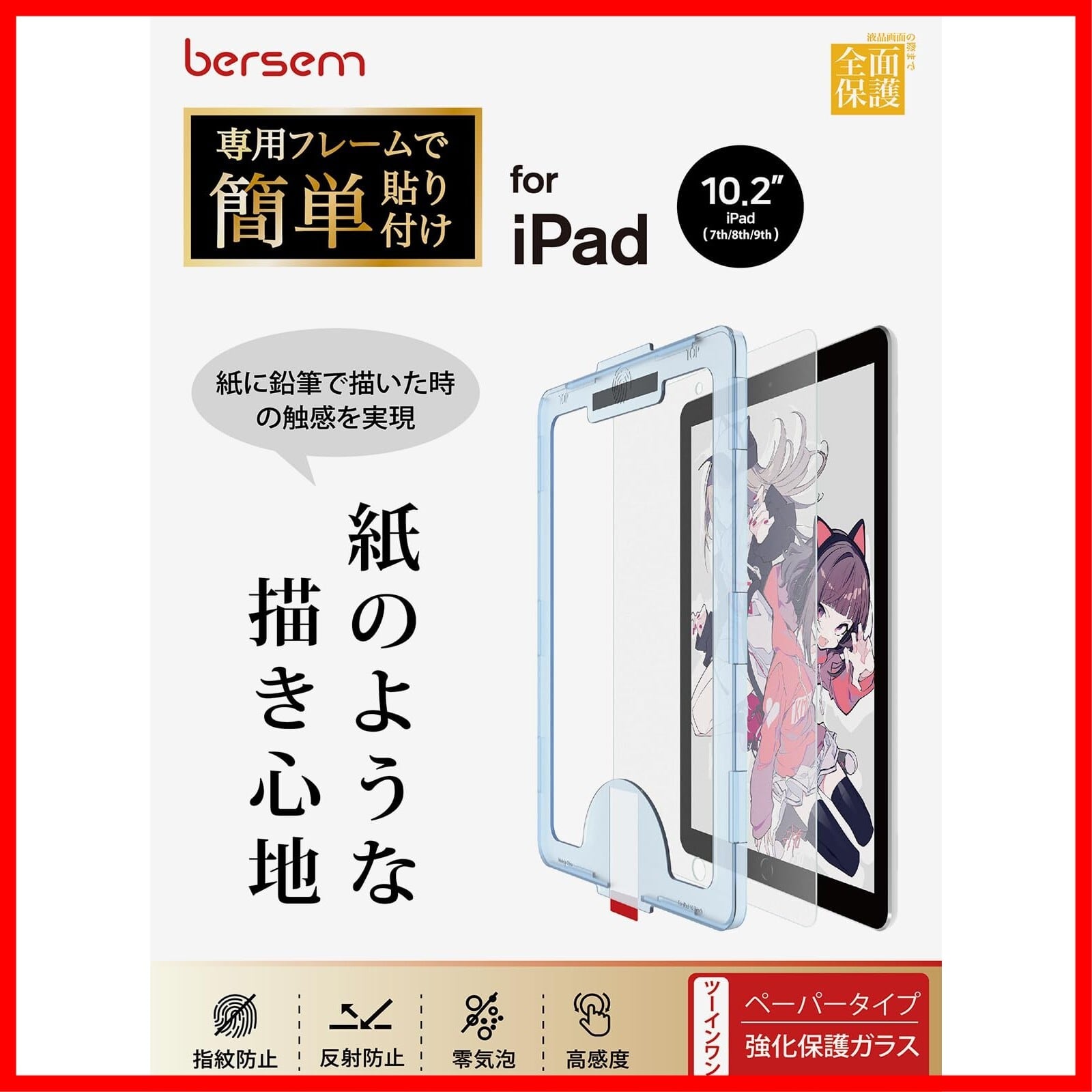 BERSEM iPad 10.2 第9/8/7世代(2021/2020/2019年)用 強化ガラス保護フィルム ペーパーライクフィルム【自動校正専用貼り付けガイド枠付き】 【紙のような描き心地】【反射防止アンチグレア】【指紋防止】【気泡防止】