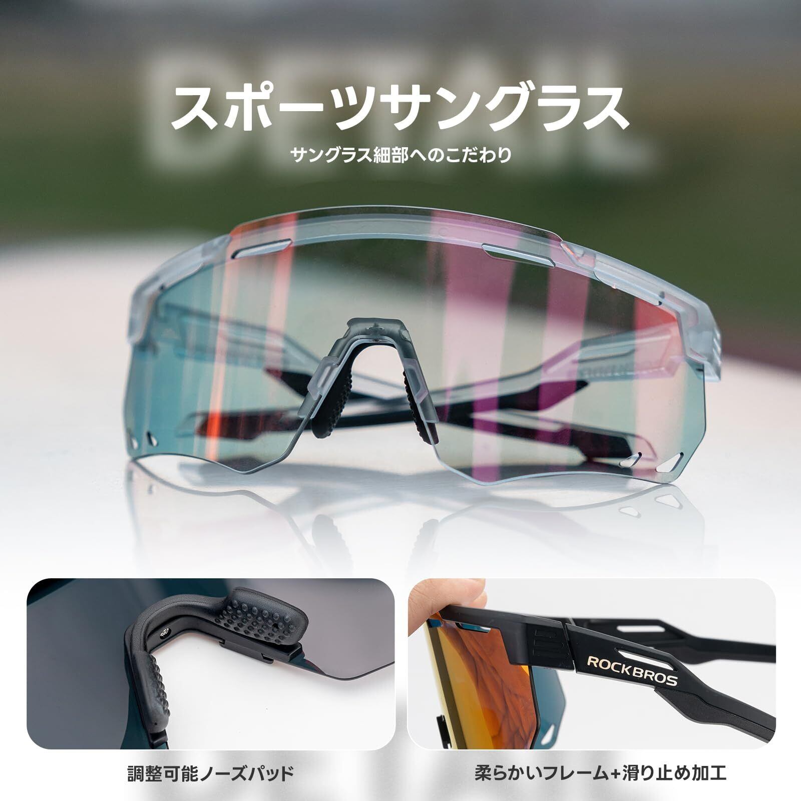 ROCKBROS(ロックブロス)調光サングラス スポーツサングラス ロードバイク バイク サングラス 調光 UV400 紫外線カット 超軽量 高靭性 耐衝撃 収納ポーチ付き 自転車 ランニング 登山 ゴルフ 野球 釣り メンズ レディース