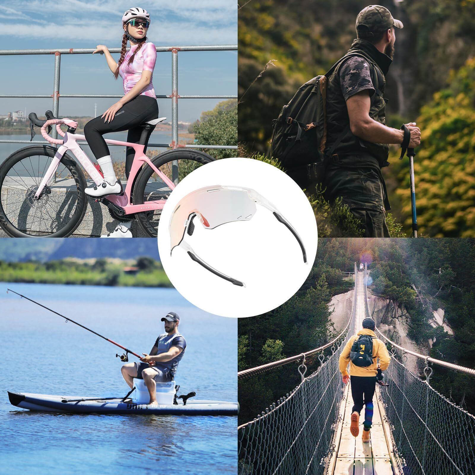 ROCKBROS(ロックブロス)調光サングラス スポーツサングラス ロードバイク バイク サングラス 調光 UV400 紫外線カット 超軽量 高靭性 耐衝撃 収納ポーチ付き 自転車 ランニング 登山 ゴルフ 野球 釣り メンズ レディース | hananoki