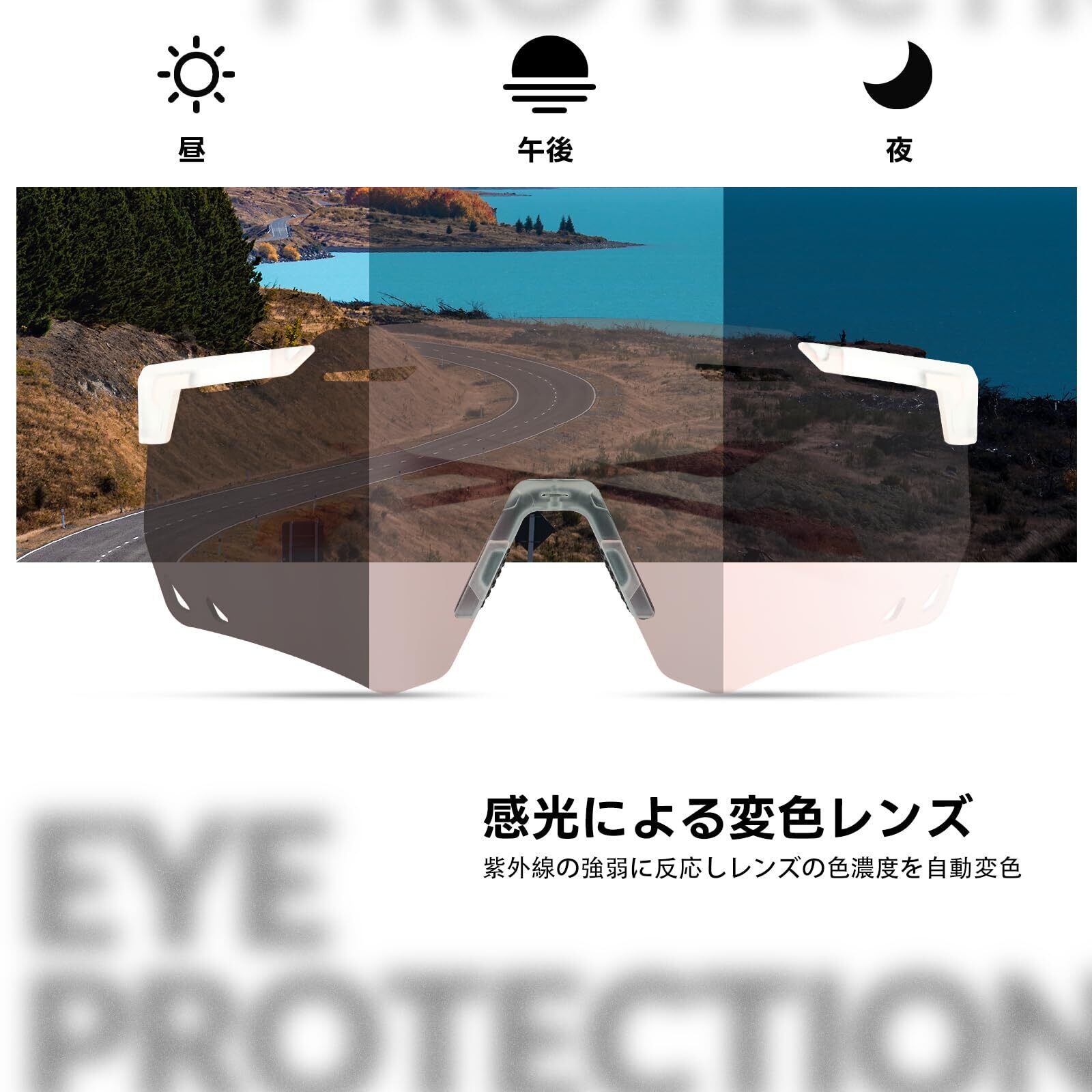 【優れた素材&超軽量】柔軟なTR90フレーム+PC変色レンズが採用して、超軽量で丈夫で、高靭性、弾力性、安全性、耐衝撃性に優れています。超軽量:サングラス本体僅約28g、長時間掛けでも疲れにくいです。