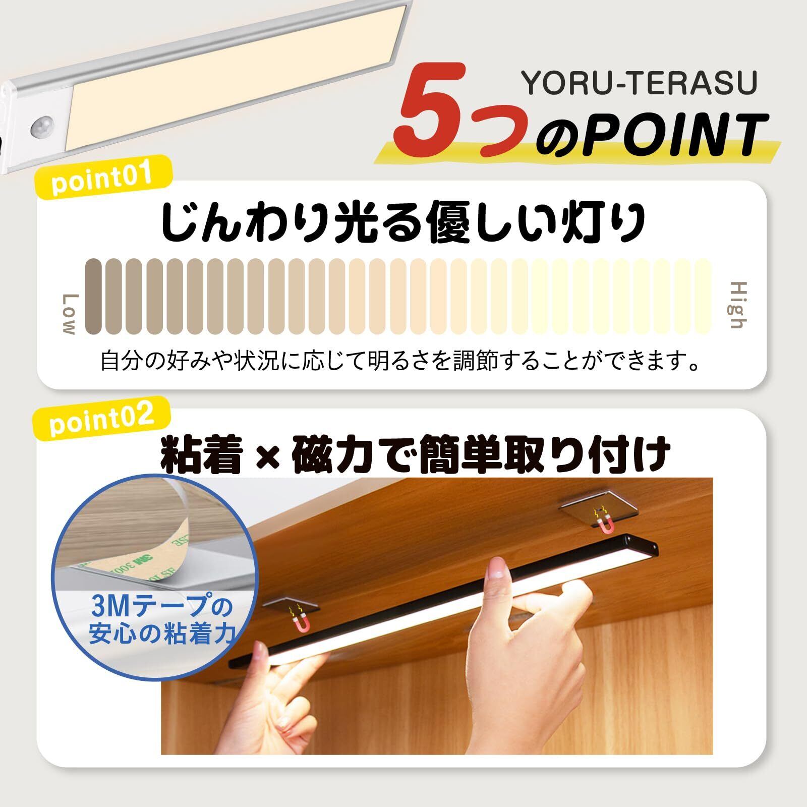 ヨルテラス 人感 センサーライト 室内 【3M社製テープ採用】 足元灯 フットライト TypeC充電式 マグネット着脱式 じんわり光る 明るさ調節機能付き CHO-JU (電球色 20cm)
