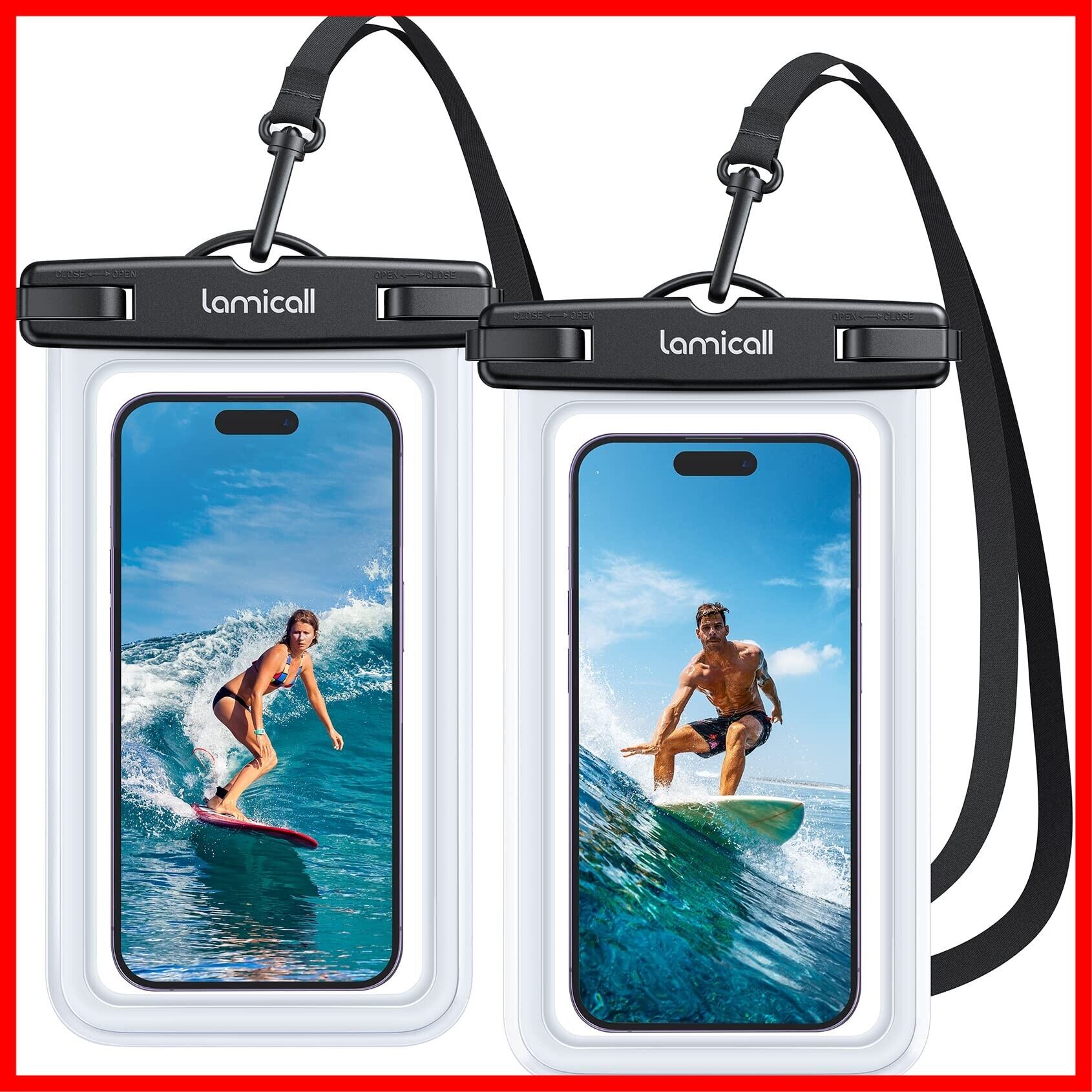Lamicall 【2枚セット 完全防水】 スマホ 防水 ケース 海 IPX8 : プール お風呂 水中撮影 スマホ ぼうすい ケース アイフォン スマフォ すまほ アイホン 携帯 けいたい 顔認証 首かけ 海水浴 水泳 潜水 温泉 iPhone 16e 16 15 14 plus pro promax 13 mini 12 se Huawei Xperia android に対応 透明