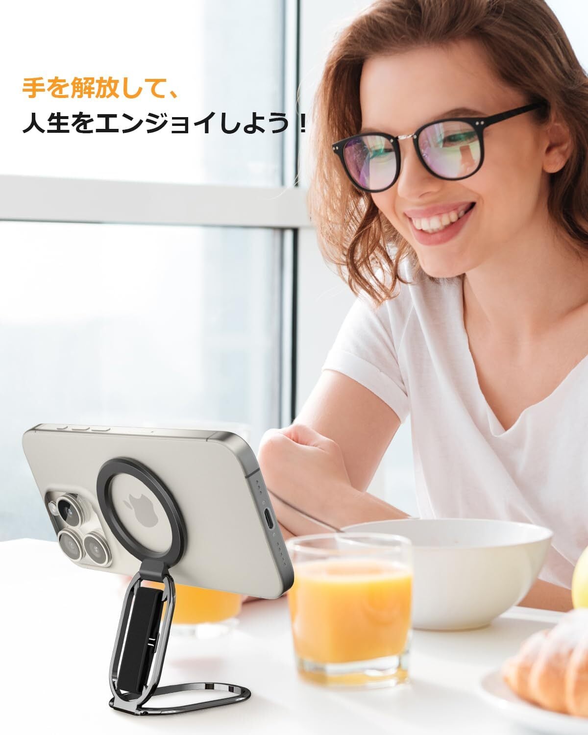 【多角度調整可能なスタンド】このiPhone磁気リングスタンドは、多角度調整可能なスタンドを備えており、360度回転し、ダブルジョイントで280度および360度反転します。35000回の折りたたみテストを経ても緩まないように設計されています。横向きと縦向きの2つのハンズフリーモードを提供します。ビデオ、映画、YouTube、Instagramの視聴、セルフィー撮影、または他の人とFaceTimeで話すためのマグセーフスマートフォンスタンドとして使用できます。