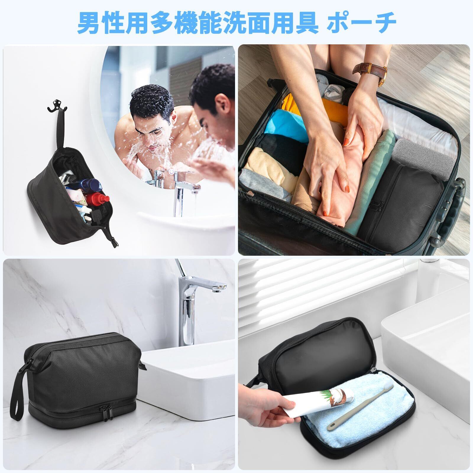 Lermendeトラベルポーチ メンズ用 洗面用具 ポーチ 化粧ポーチ 大容量 防水 乾湿分離 トイレタリーバッグ 旅行用ポーチ 化粧品 洗面用品収納ポーチ 多機能 持ち運び 出張 旅行用 -ブラック